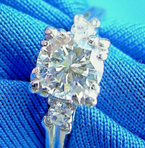 Earth mined Diamond Deco Engagement Ring 14k White Gold Vintage Estate Solitaire