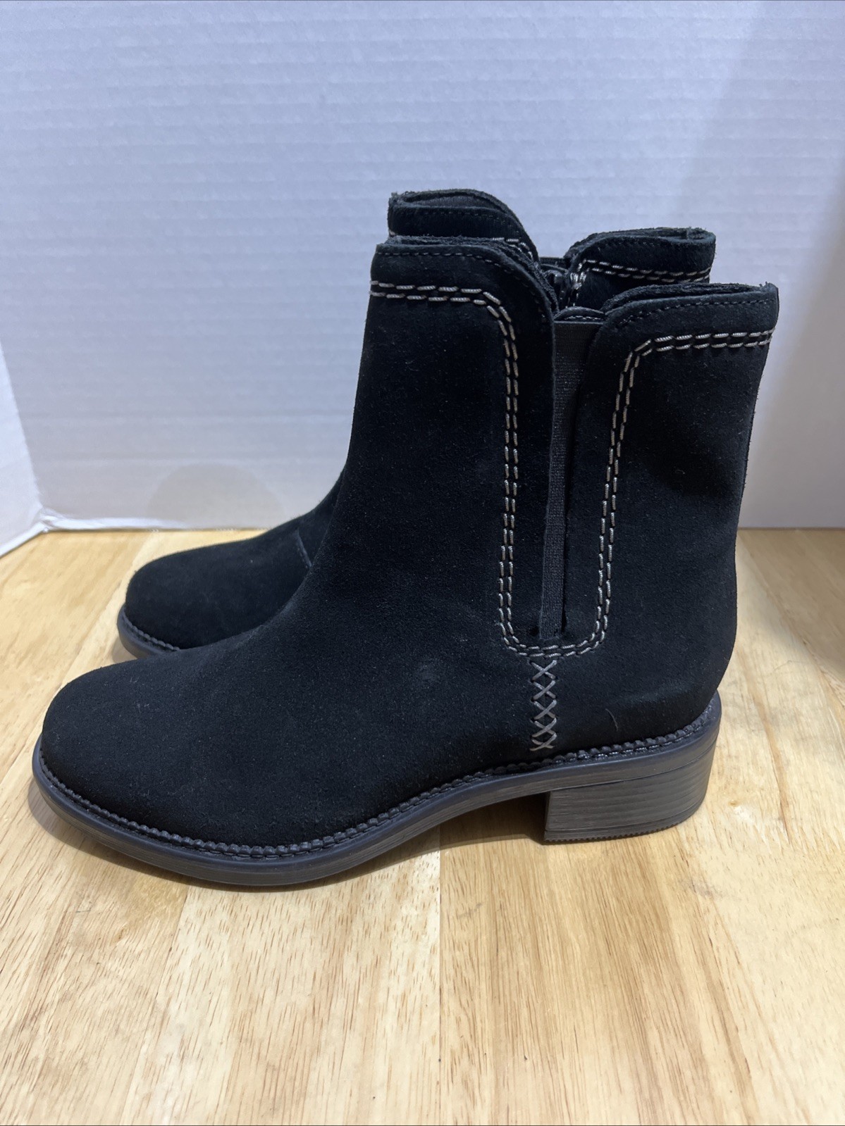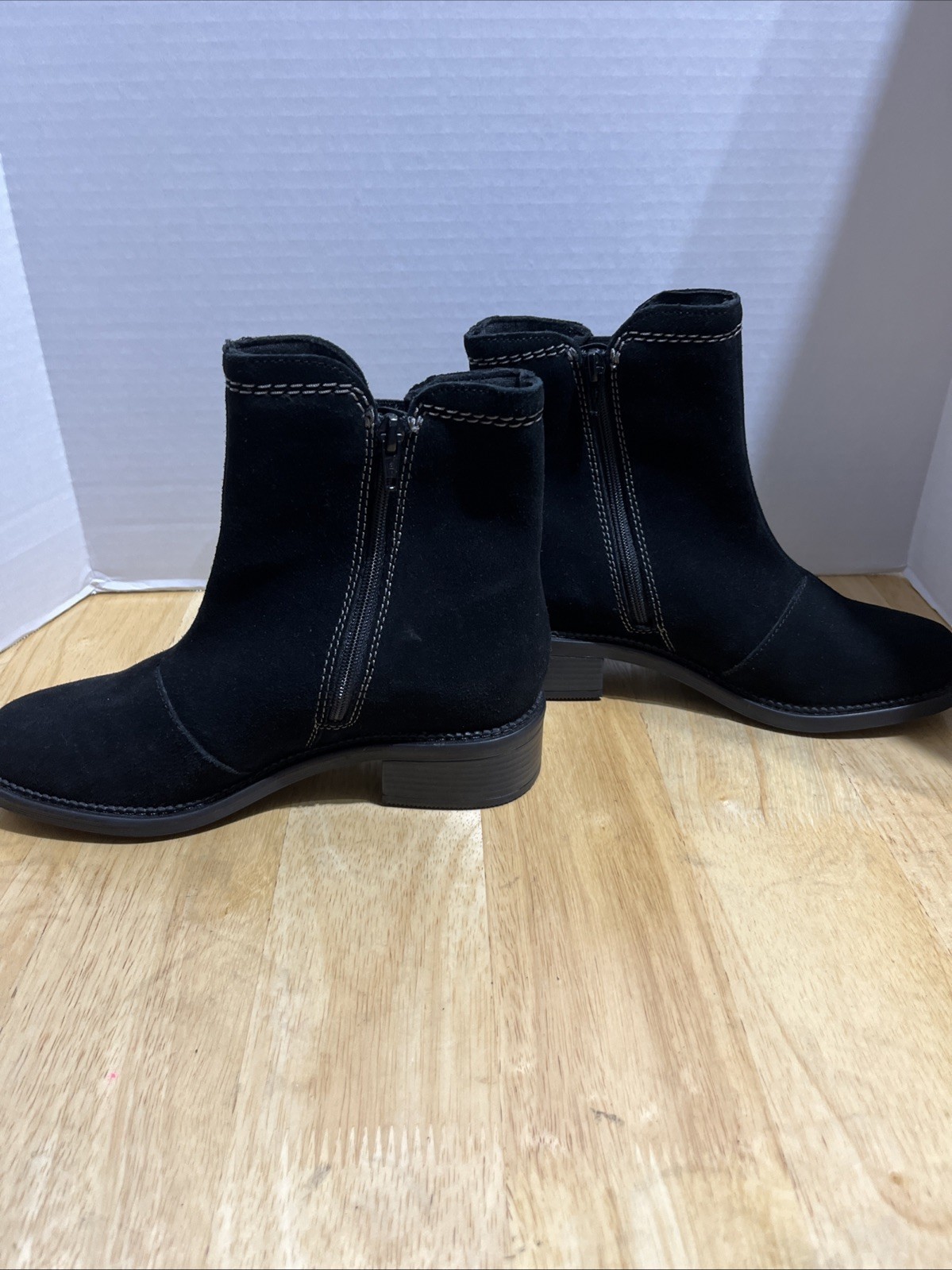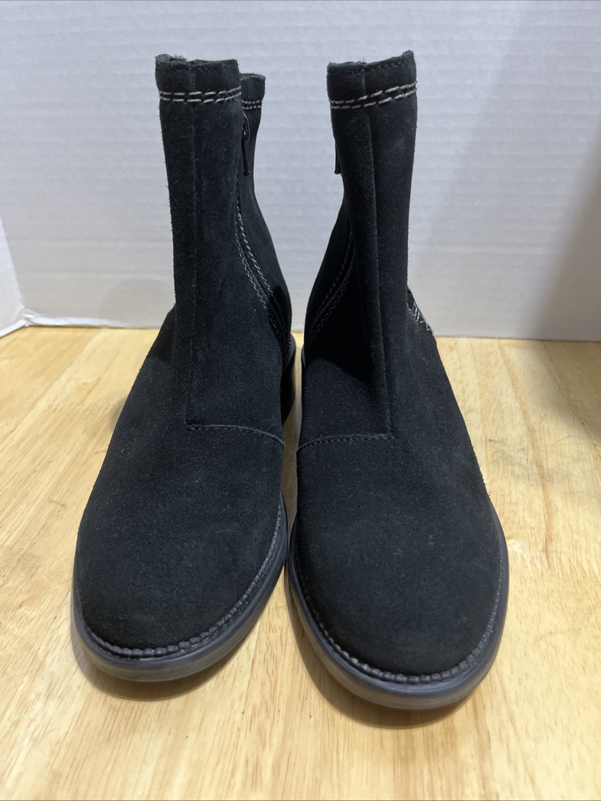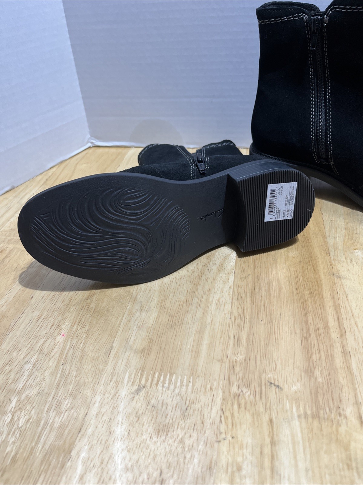 NEW CLARKS COLLECTION SIZE 8.5M BLACK SUEDE WOMEN BOOTS SIDE ZIP COMFORT