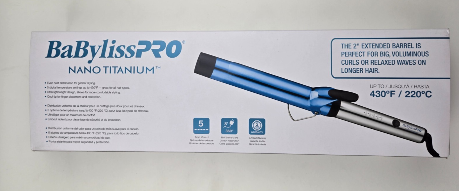 This curling iron features an Extended Barrel that's 2" longer than traditional curling barrels, made of ultra lightweight Nano Titanium for even heat distribution and retention. Digital temperature control up to 430F.Dual Voltage for Worldwide Use