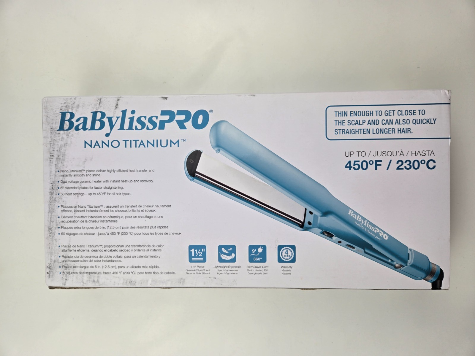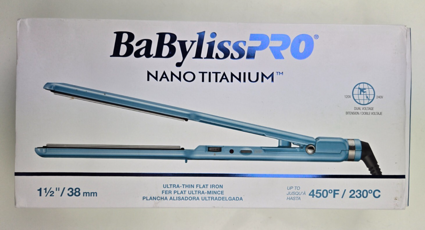 The BaBylissPRO Nano Titanium Ultra-Thin hair straightener has a slim design that helps eliminate hand fatigue while increasing styling flexibility. Create pin-straight styles with this fast-performing flat iron. Dimensions-12 L x 1.3 W x 3 H inches