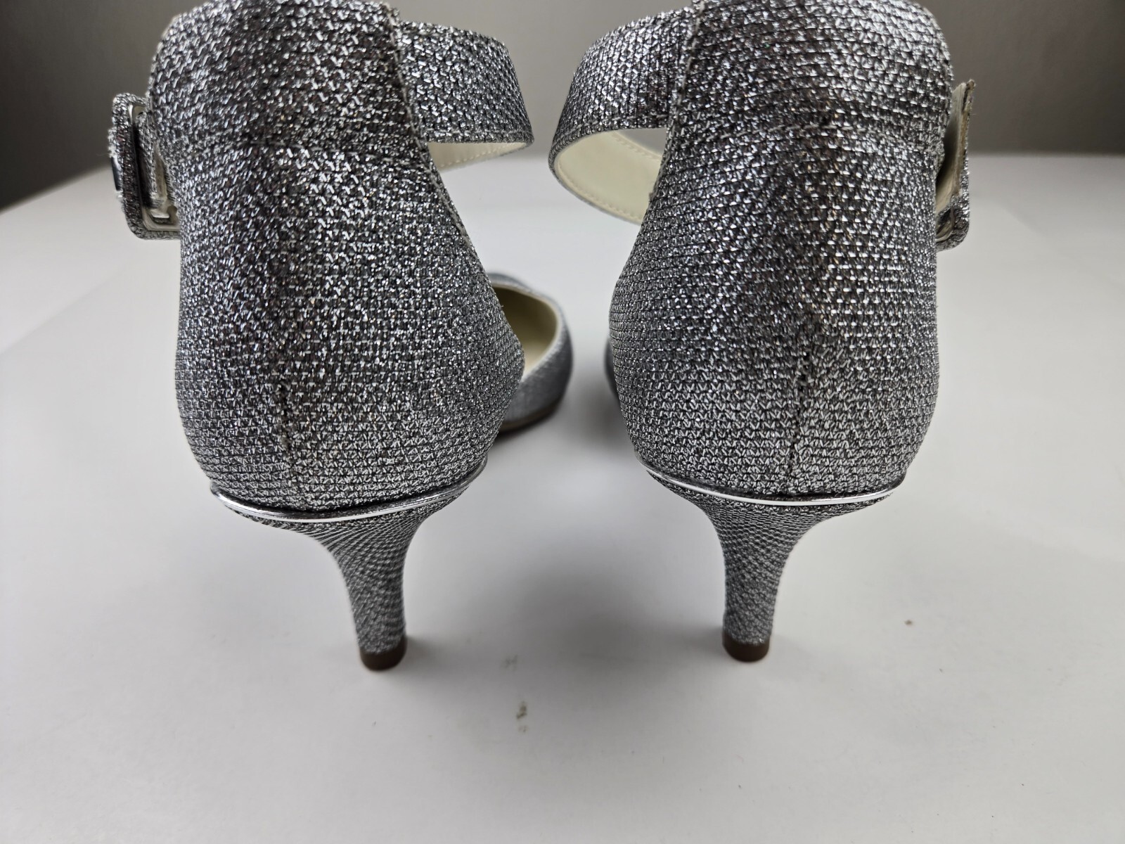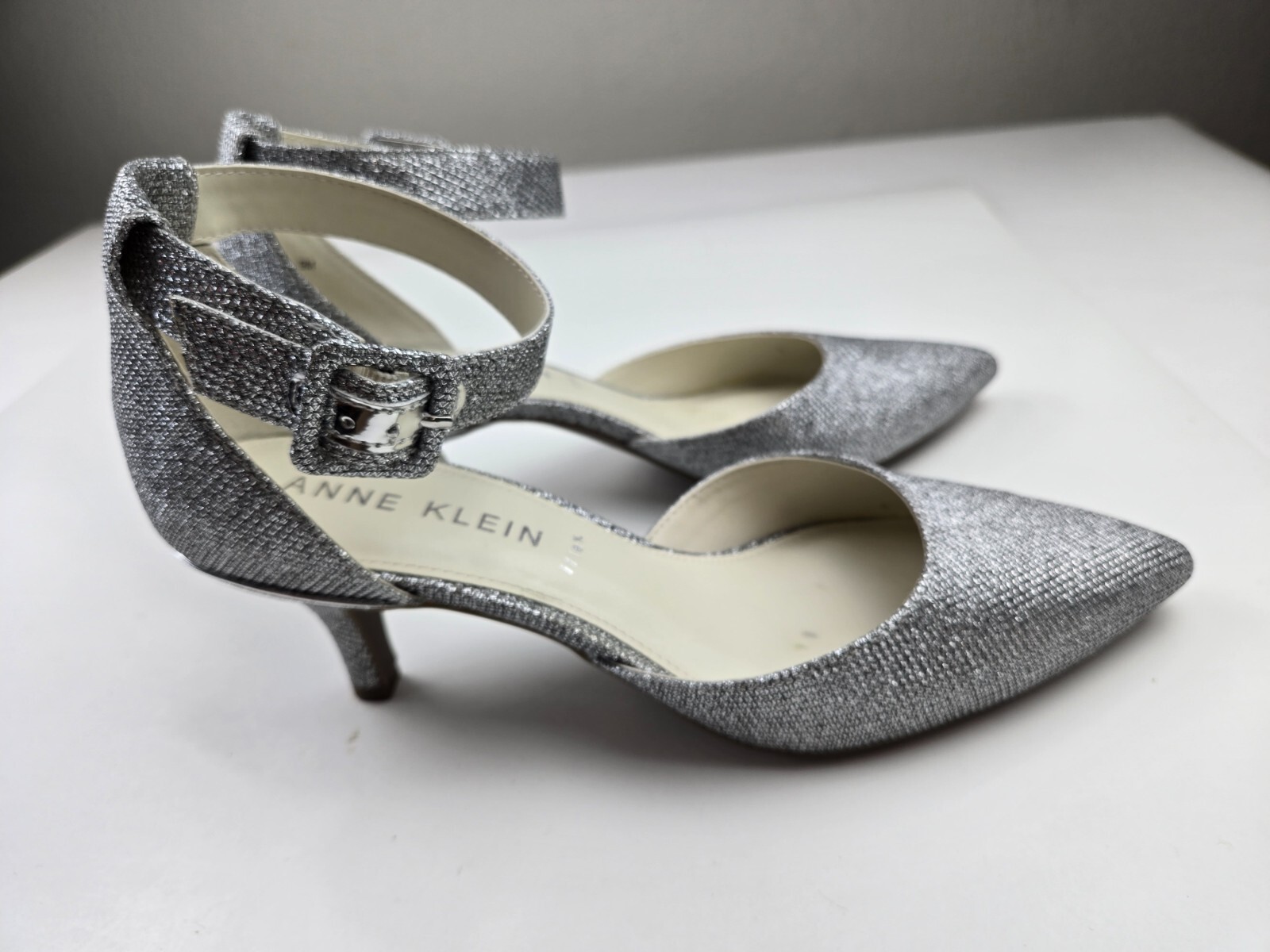 Anne Klein Womens Fabulist Ankle Wrap Dress Pumps, Silver, size 9 M