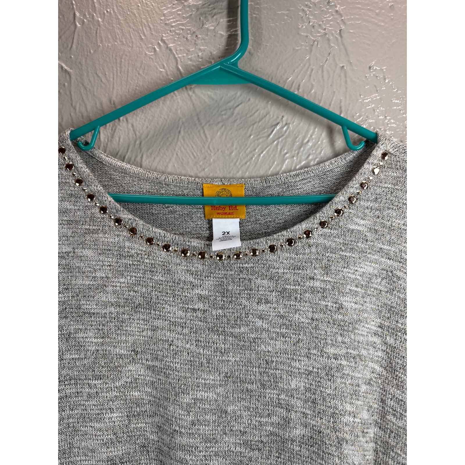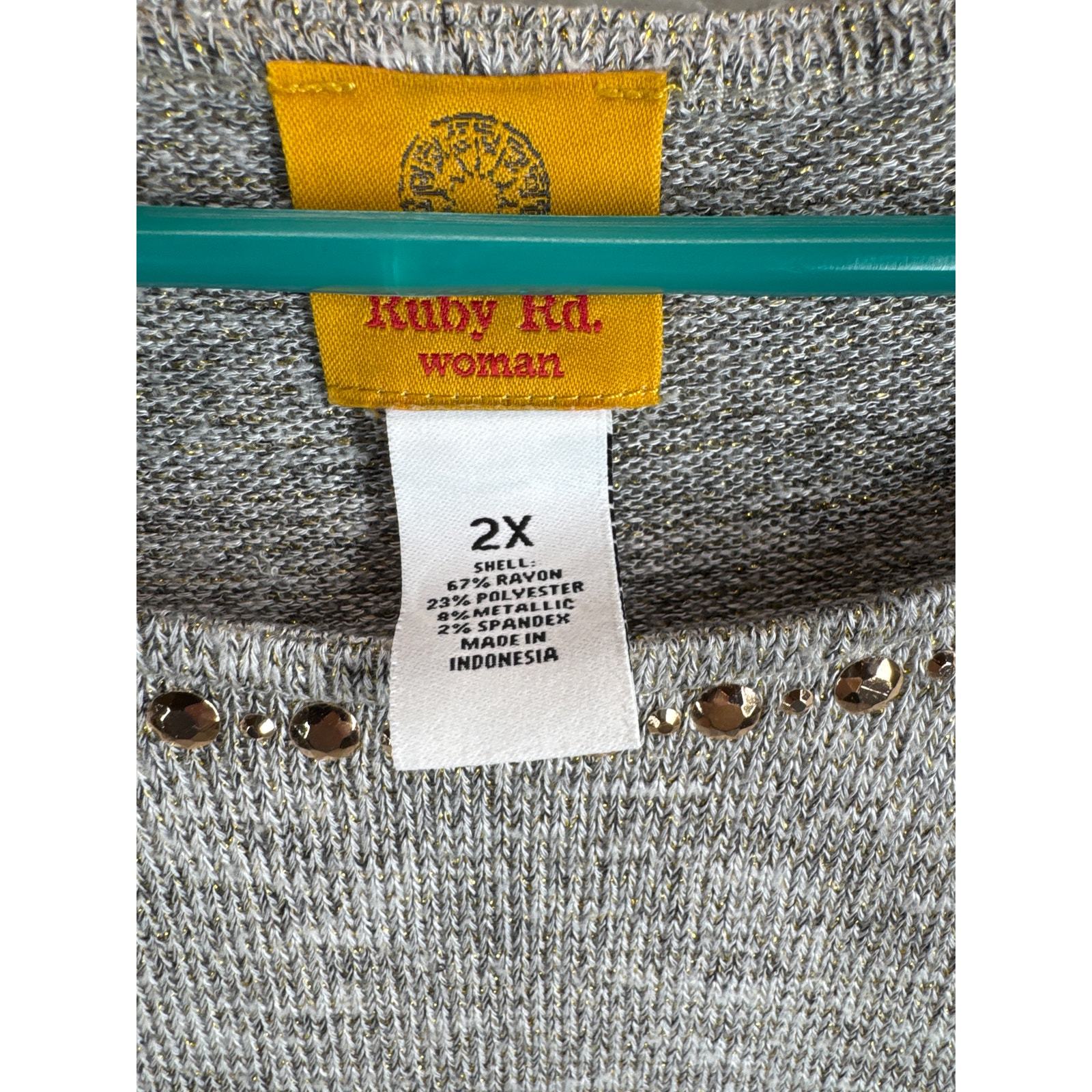 Ruby Rd Womens Hazel Twisted Front Sweater 3/4 Sleeve Embellished Size 2X