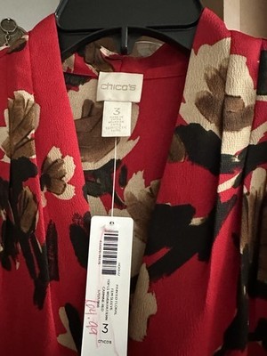 Chico’s Size 3 Women Top Painted Floral Carmine Red Button Up BNWT $89 Beauty added to cart.