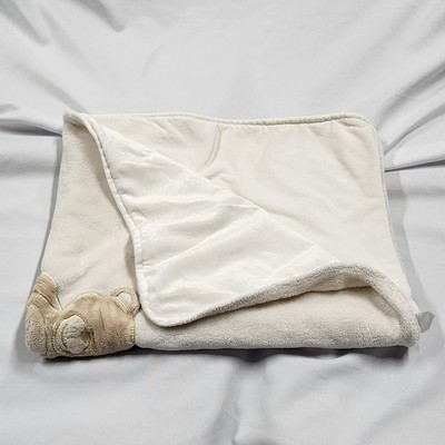 Bright Future Cream White Soft Tan Fleece Teddy Bear Baby Blanket