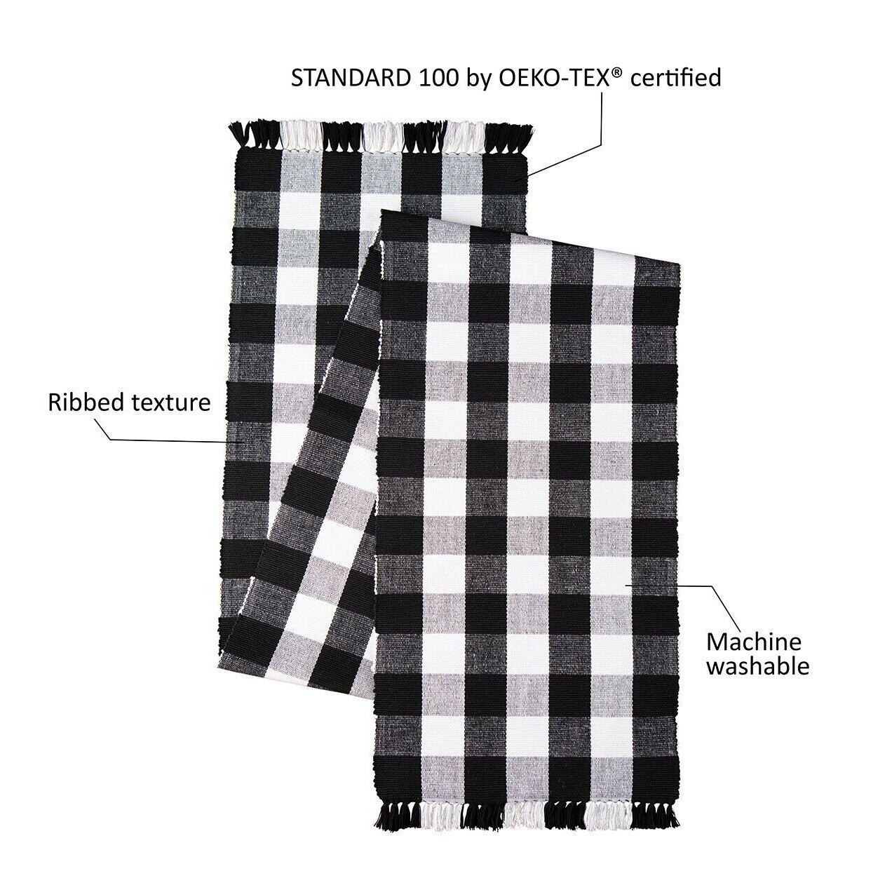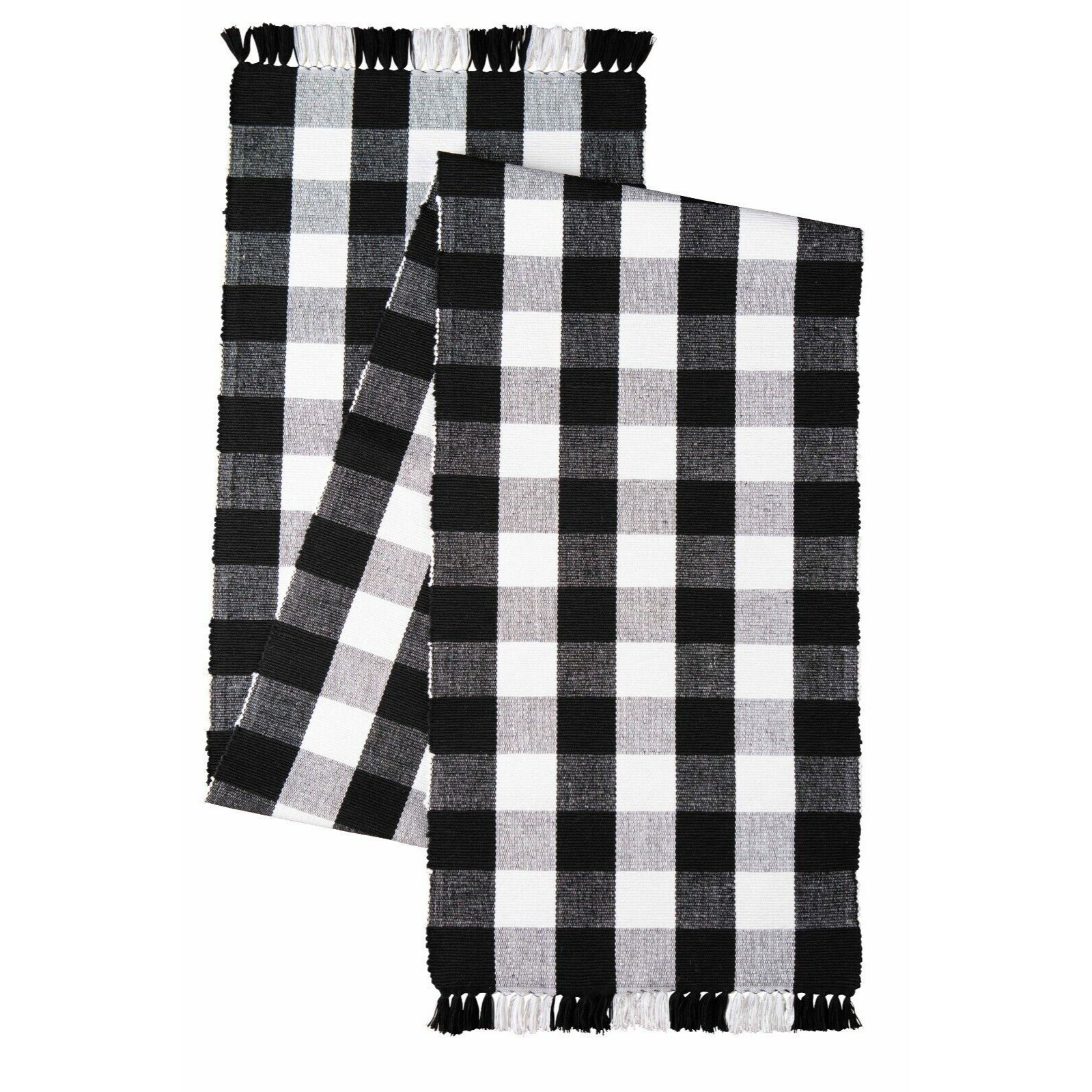 Buffalo Plaid Table Runner 14 x 72-in Cotton Black White Gray Fringe Kitchen NEW
