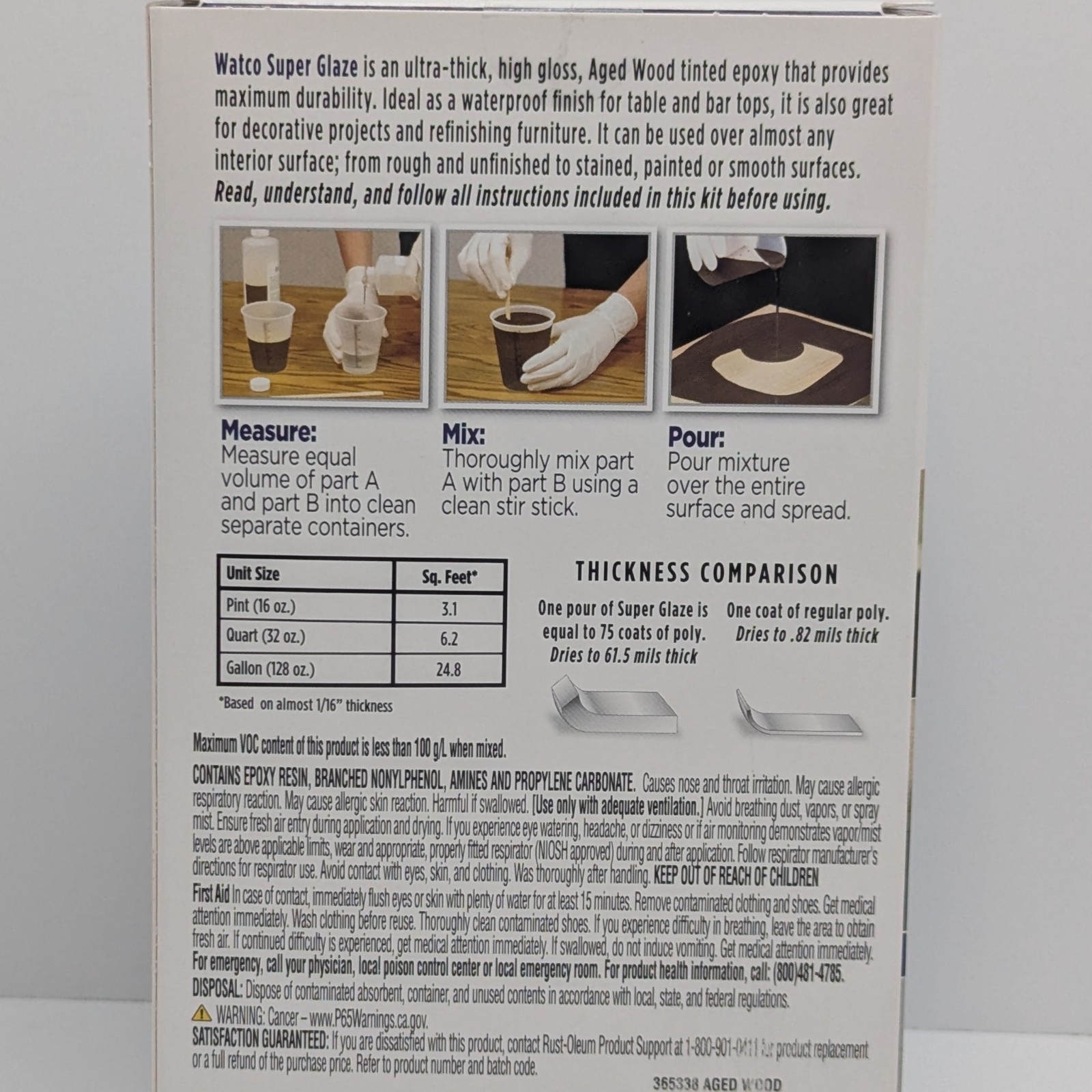 Rust-Oleum Watco Super Glaze Pour On High Gloss Epoxy 1 Quart Aged Wood (50)