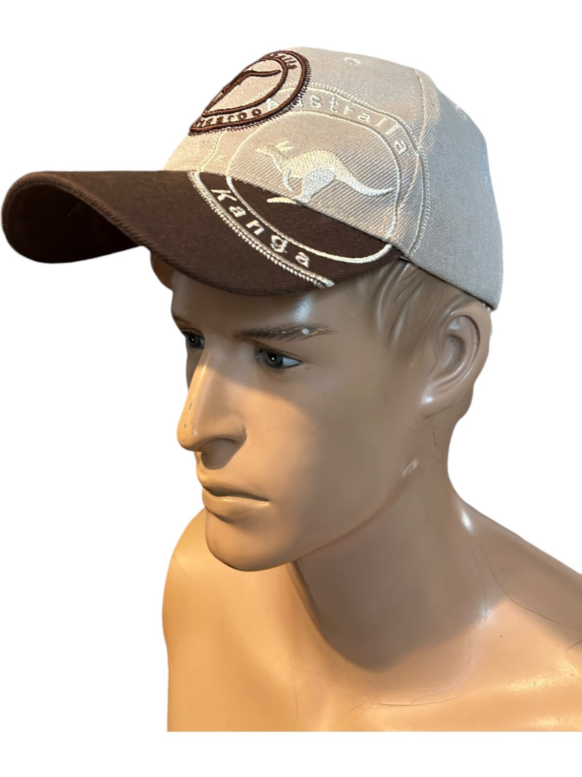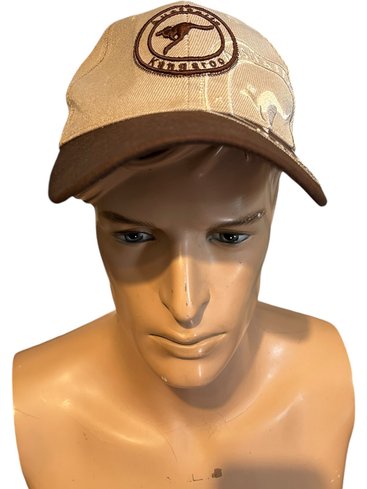Australia Kangaroo Double-Stamp Beige & Brown Hook & Loop Adjustable Hat OSFA