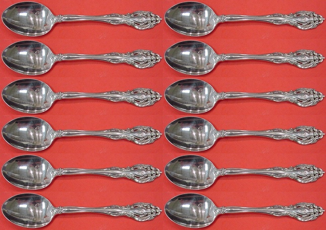 Sterling silver Place Soup Spoon 12-piece set, 6 5/8", in the pattern La Scala by Gorham. It is not monogrammed and is in excellent condition.