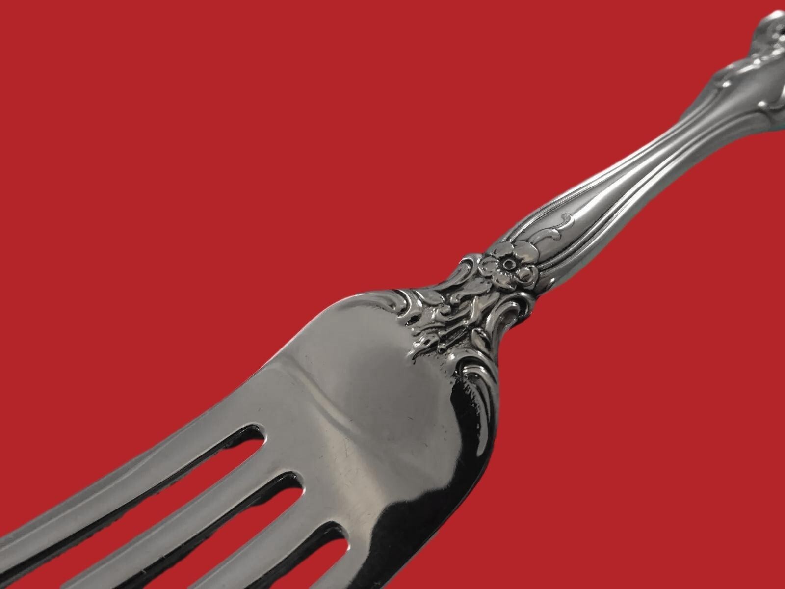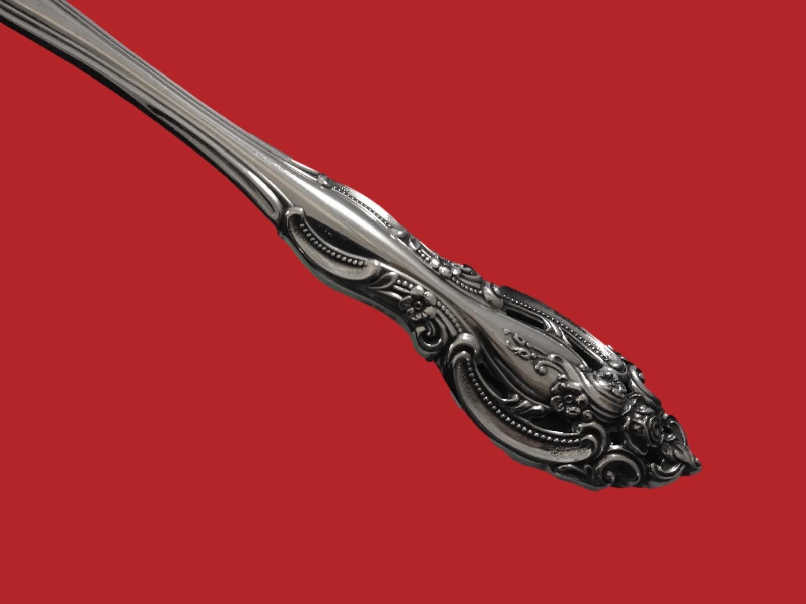 For a dramatic statement, this glamorous pattern brings three-dimensional opulence to your table. Introduced in 1964, the finely tooled design incorporates deeply carved borders with lavish scrollwork enhanced by intermittent floral details and a striking rosette crowning the neck. Significant weight and uncompromising craftsmanship lend a luxurious note to traditional and formal settings to wow your guests and provide the ultimate finishing touch to all of your meals.