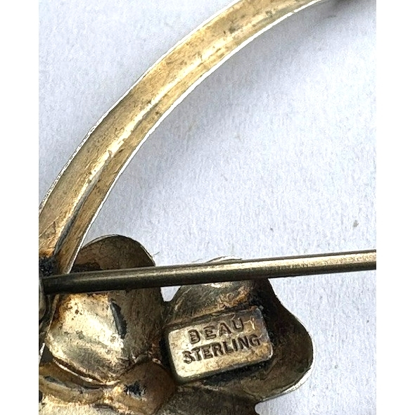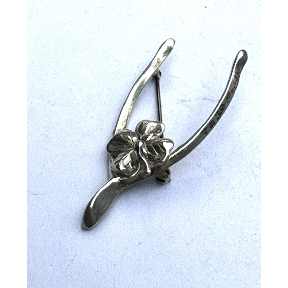 BEAU 925 STERLING SILVER WISHBONE AND SHAMROCK BROOCH SKY