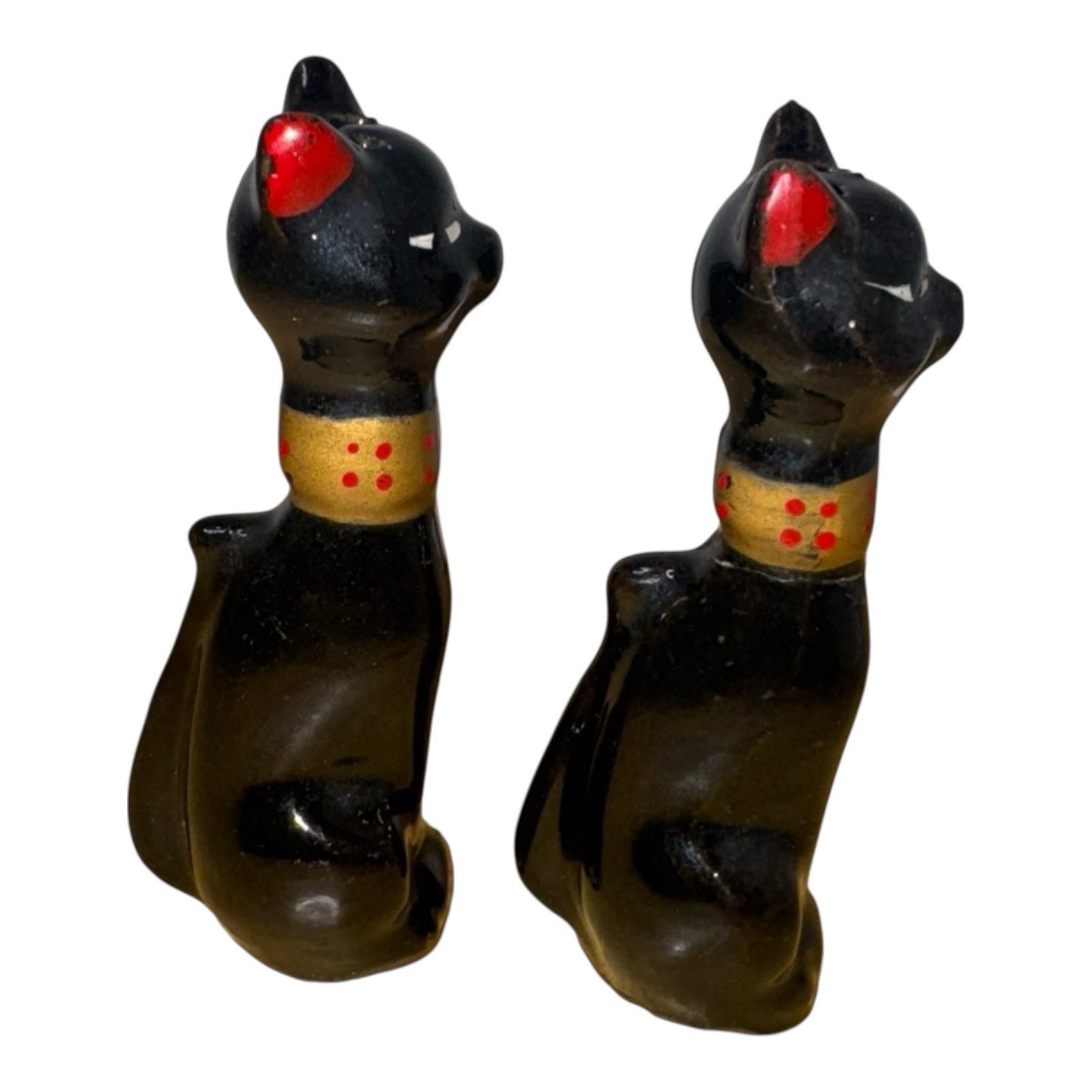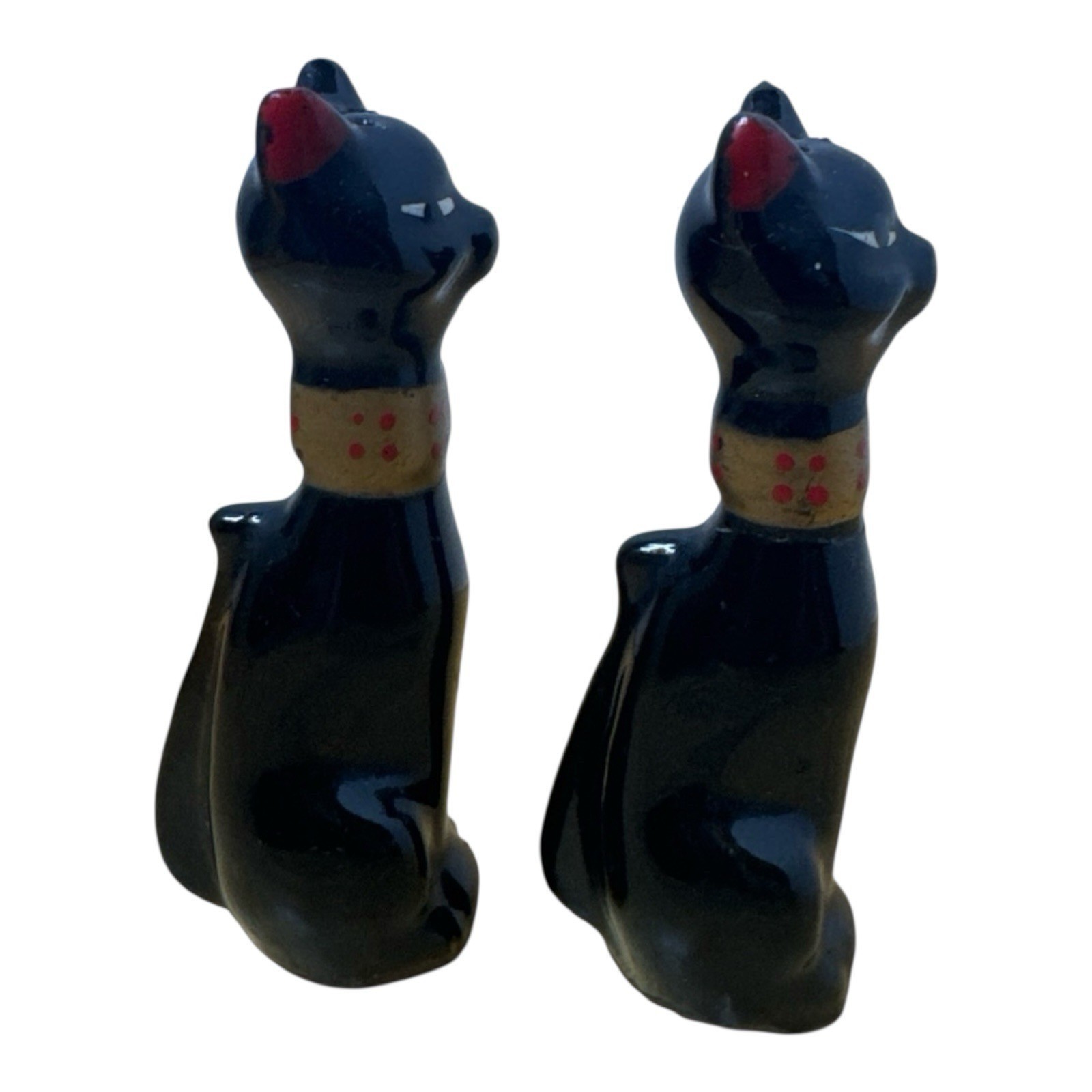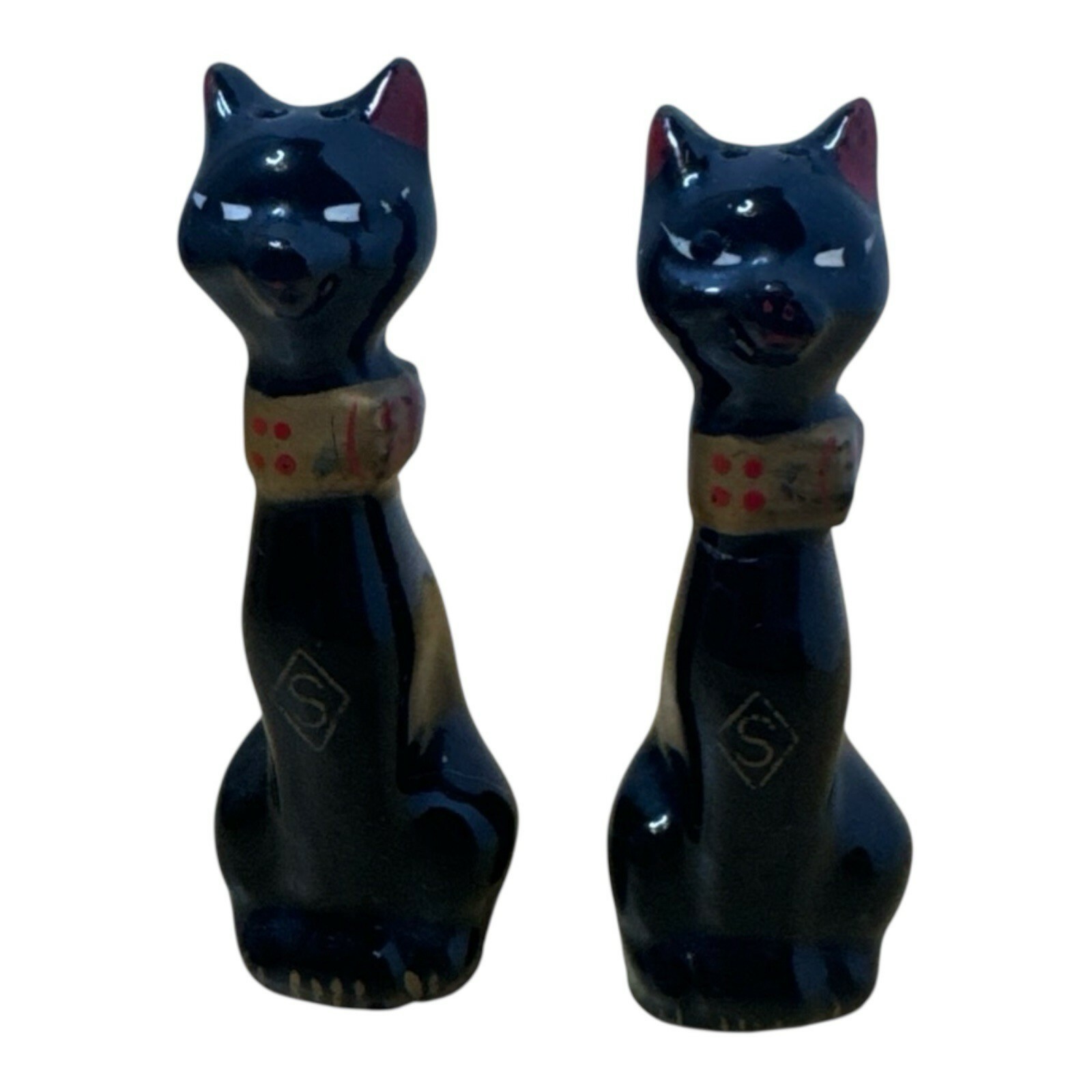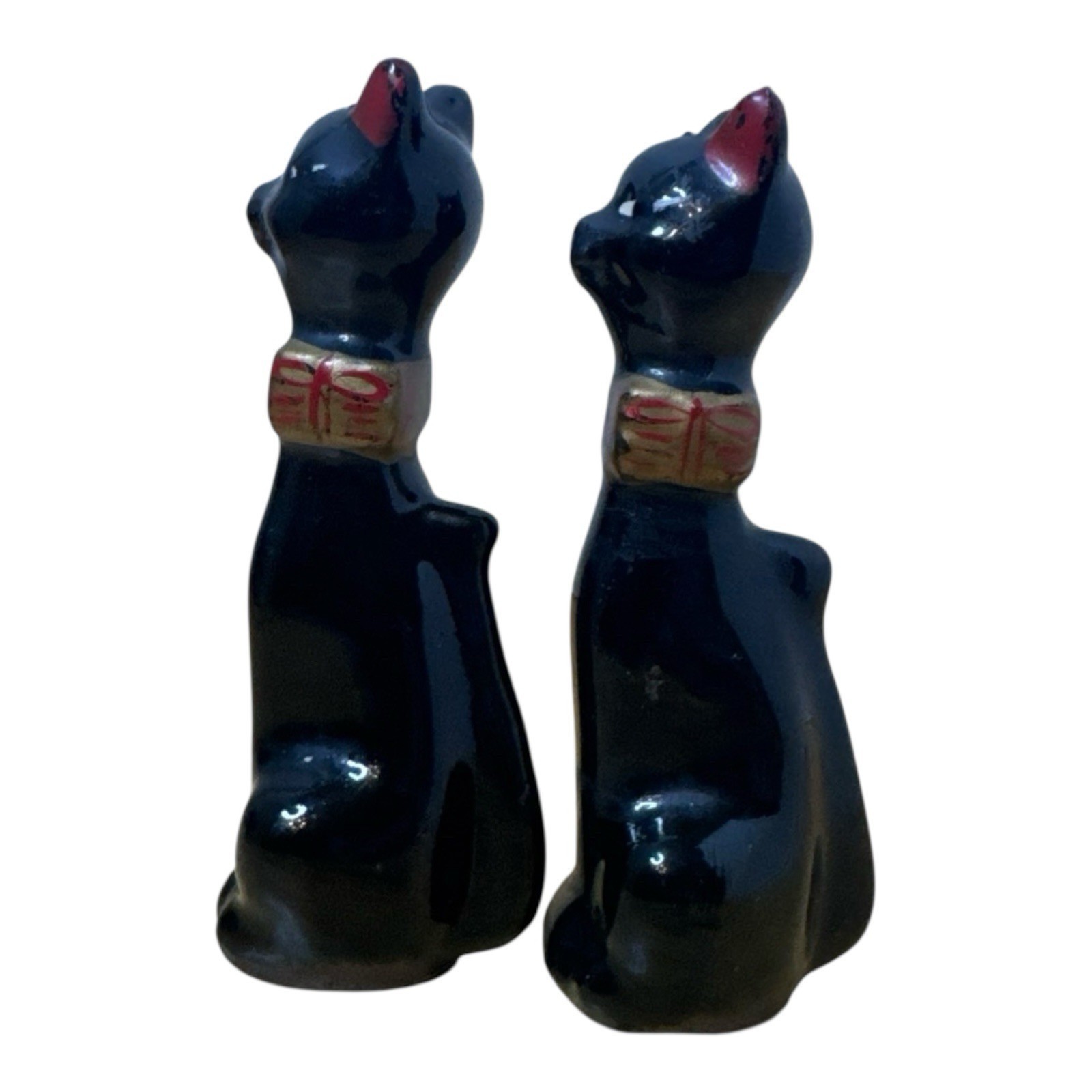 Black Siamese Cats Salt Pepper Shaker Mid Century Modern Christmas Halloween
