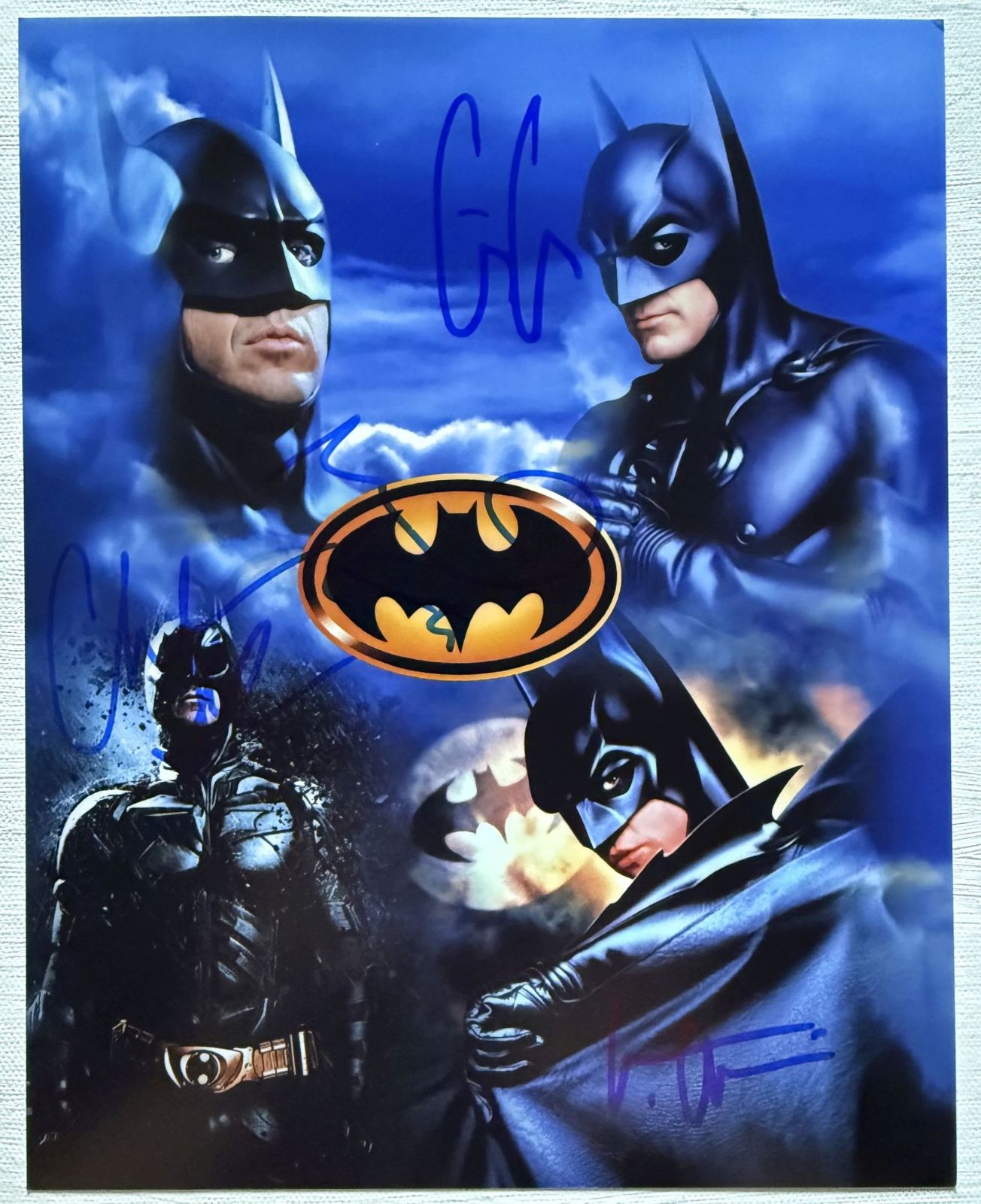 A fantastic glossy 8x10 photo hand-signed by Hollywood legends Michael Keaton, George Clooney, Christian Bale and Val Kilmer. It comes with a lifetime guarantee of authenticity COA with matching serial-numbered, tamper-proof hologram stickers. All of our items are guaranteed authentic for life and are backed by our 20+ years in the autograph business. All items are hand-signed; we never sell copies or reproductions of any kind.