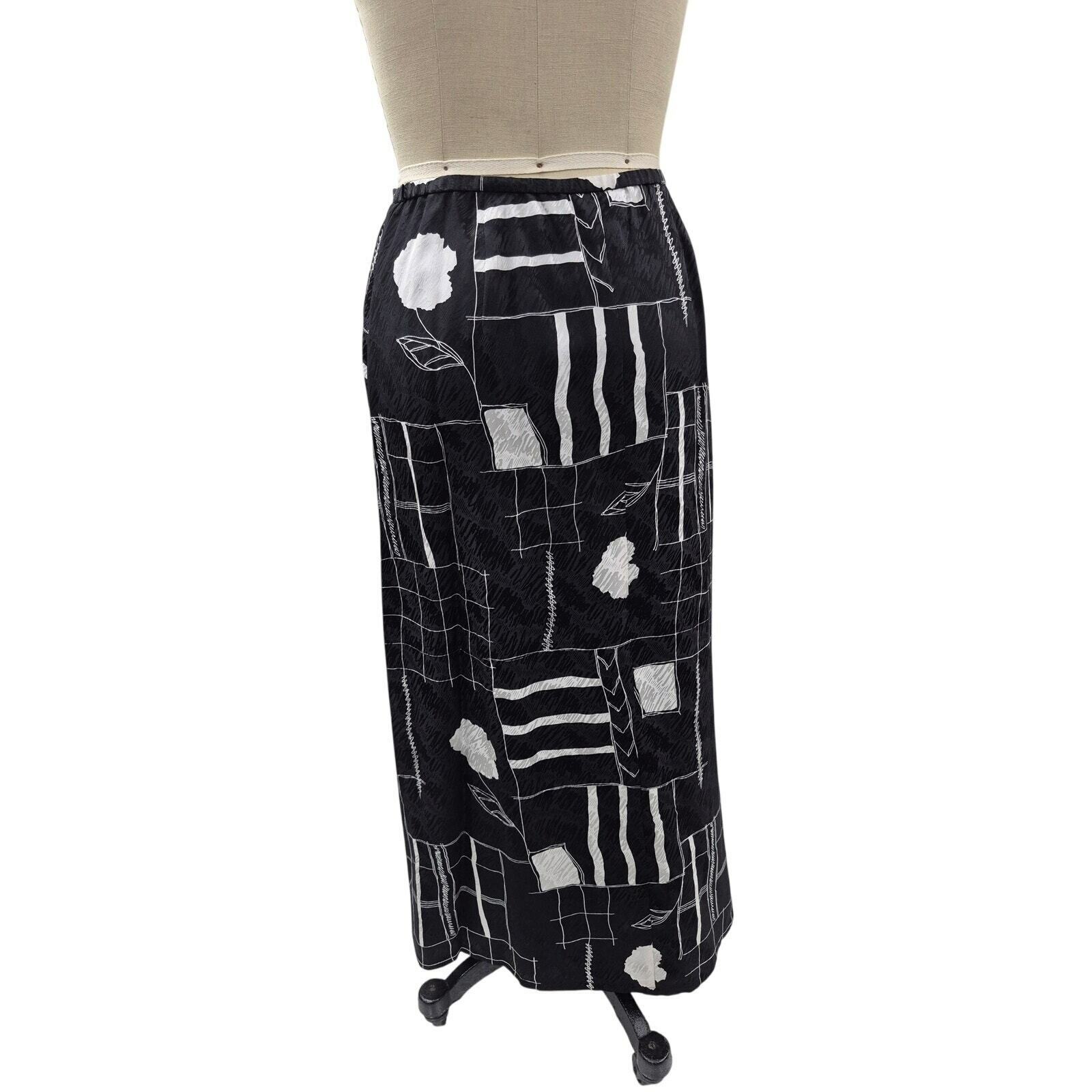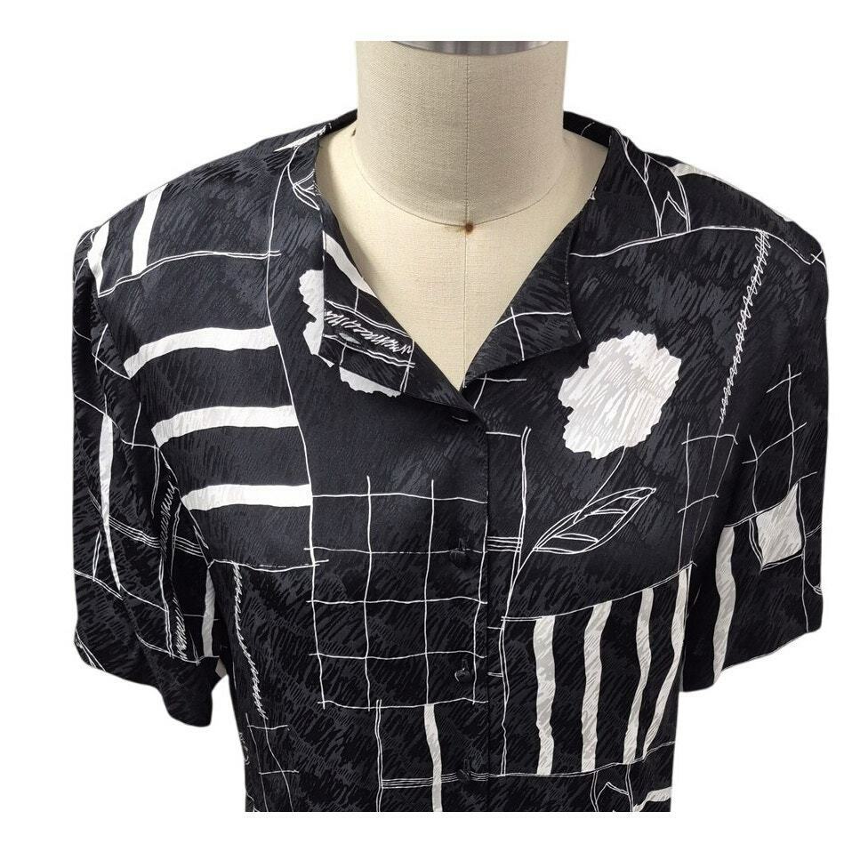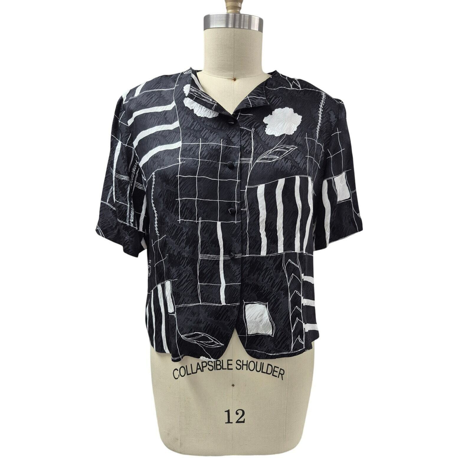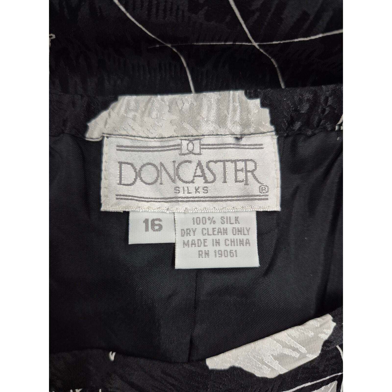 DONCASTER 100% Silk Skirt/Blouse Set Black White Geometric Floral pattern Sz 16- NWOT