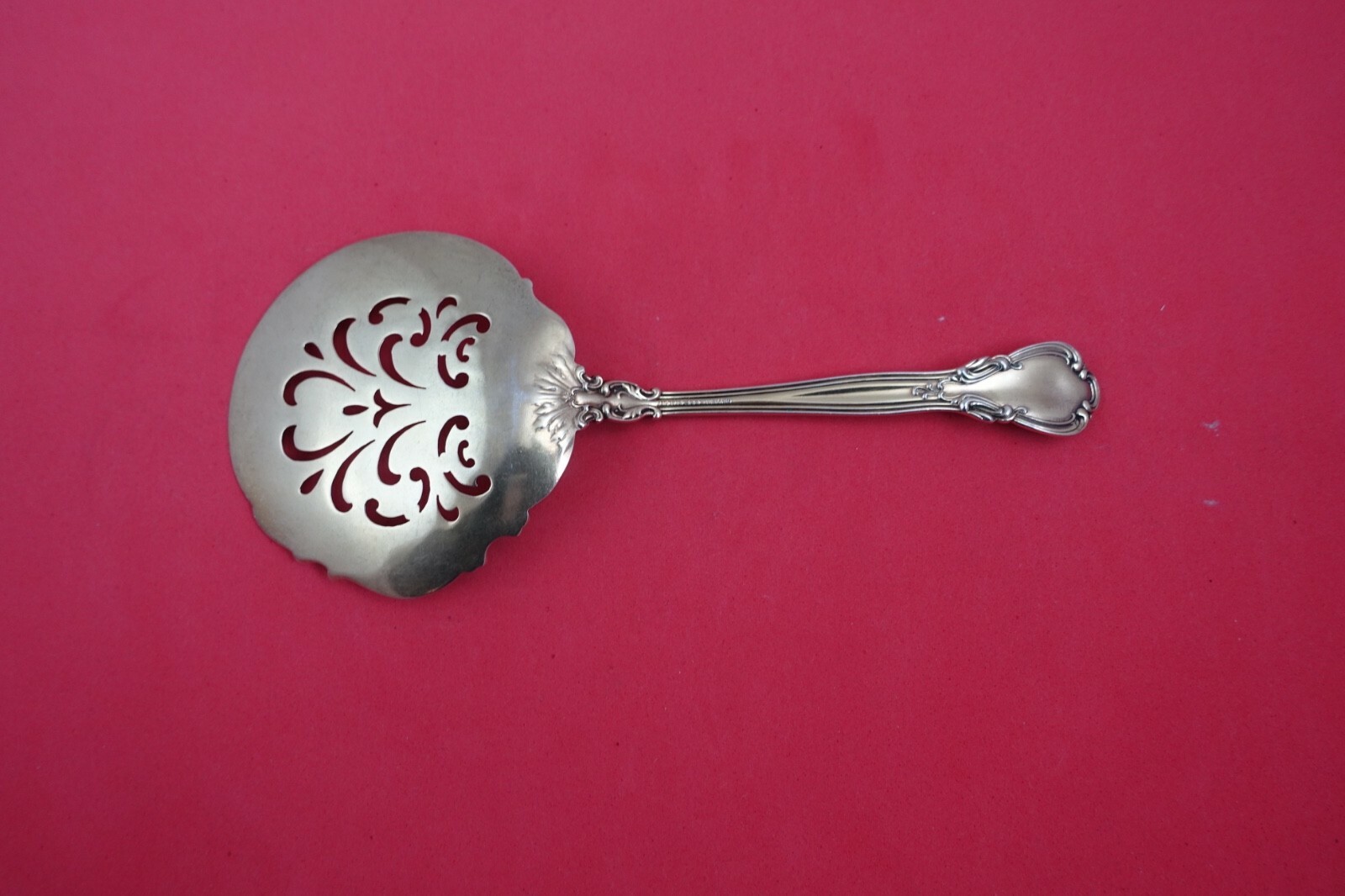 Sterling silver Tomato Server slice, gold washed with applied lacing, light vermeil and enamel 8 7/8" in the pattern Chantilly by Gorham. It is monogrammed and is in excellent condition.