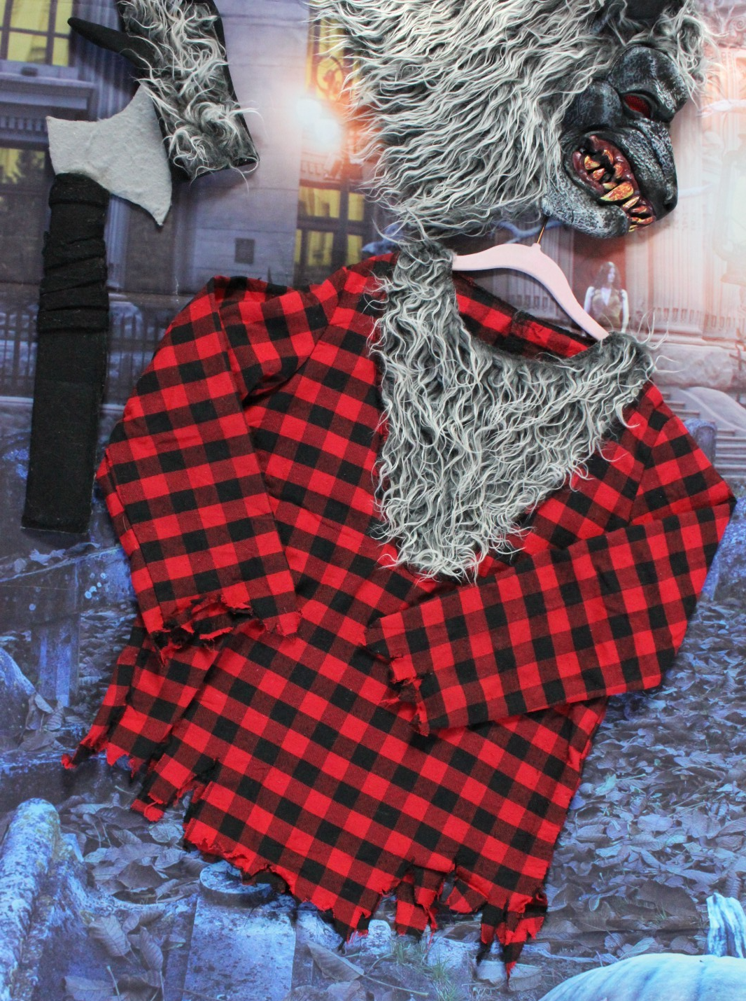 Step out of the fairytales and legends and into your Halloween or costume party with this Amscan Hungry Howler Boys' Costume. The set of furry paws, hood and a red and black plaid shirt transforms you from an ordinary kid to a fearful werewolf that can scare people into giving you more candy when trick-or-treating.