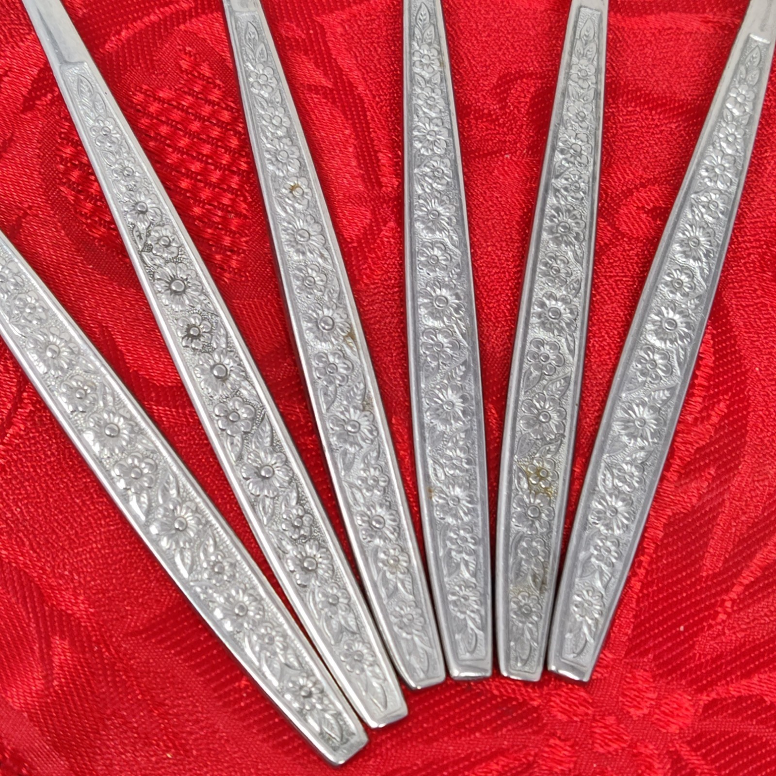 6X Vtg Tbsp Orleans ORL45 Tablespoon Stainless Korea Floral Flower Sears Anneka