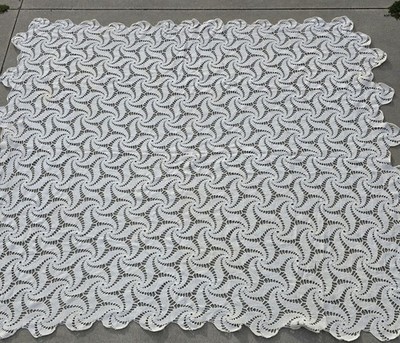 VTG Handmade Crochet Lace Bedspread Spiral Pinwheel Pattern Cottagecore 76x86