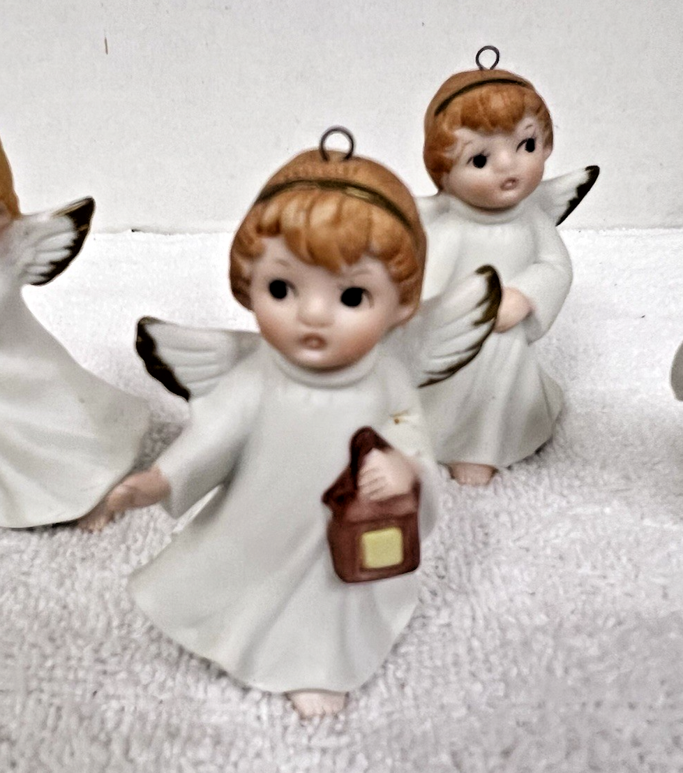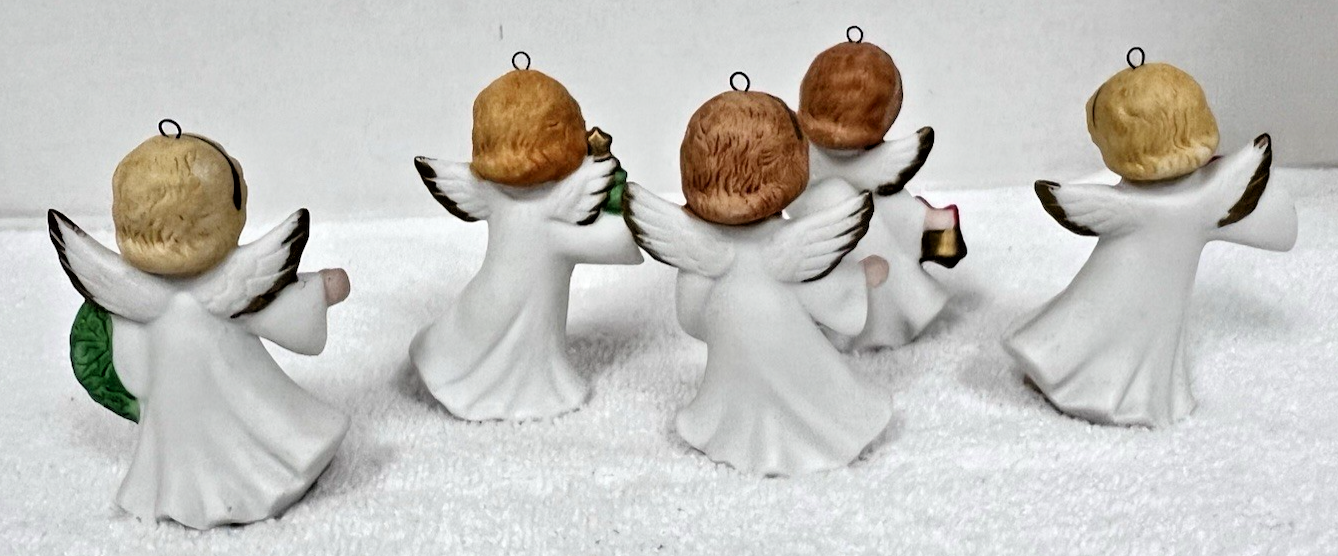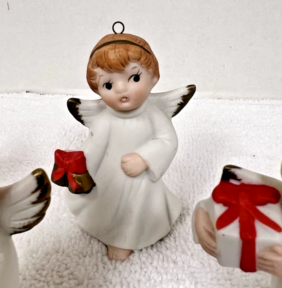 Lot 5 Porcelain Christmas Angel Ornaments Tree Wreath Gift Bells Lantern 3 1/4" no chips cracks or breaks
