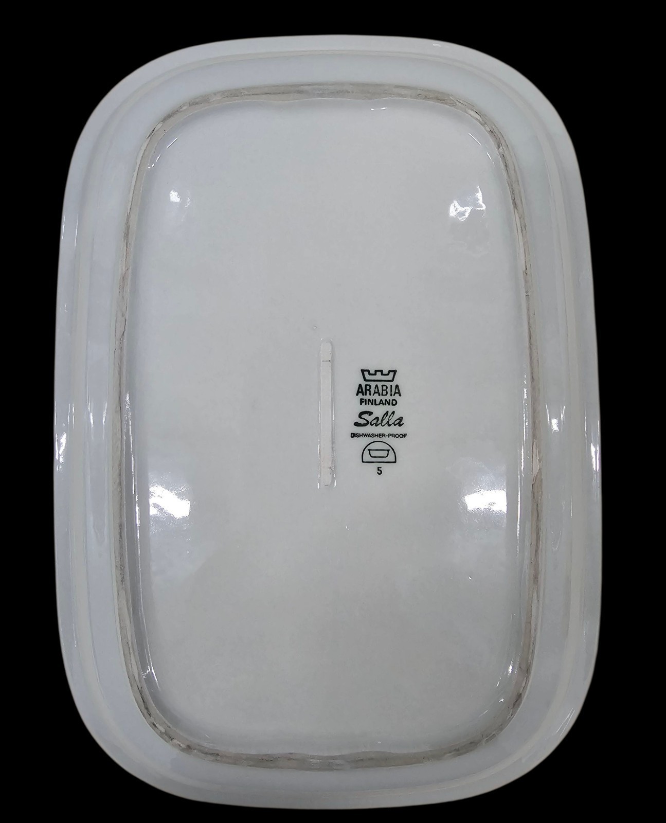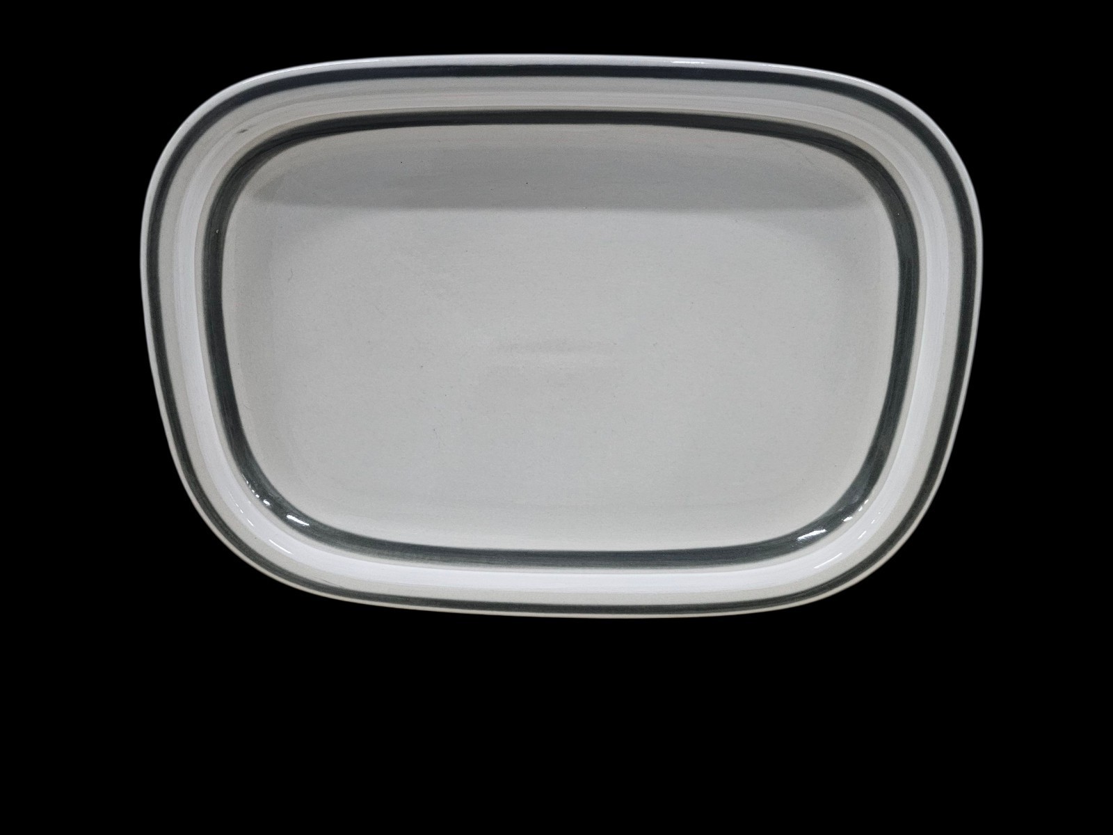 Arabia Finland Salla 14 Inch Oval Serving Platter White Gray Trim Inkeri Leivo