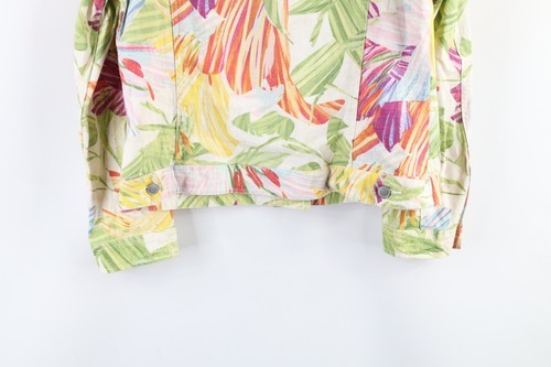 Vintage Chicos Womens Size 1 Rainbow Flower Linen Blend Button Trucker Jacket