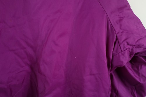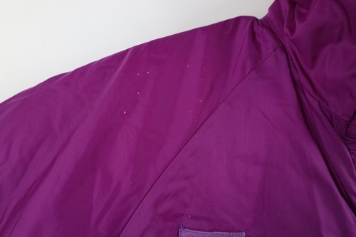 Reversible. Pink side: Blemishes front, back and sleeves. Purple side: Fabric pull left sleeve