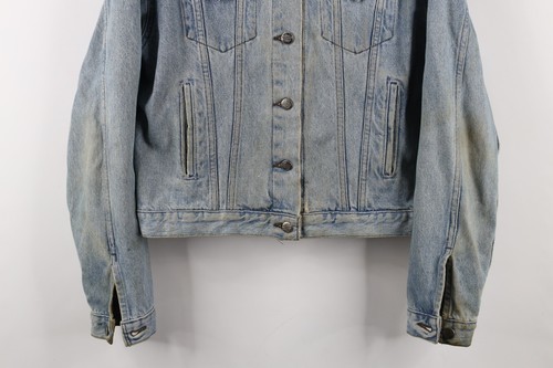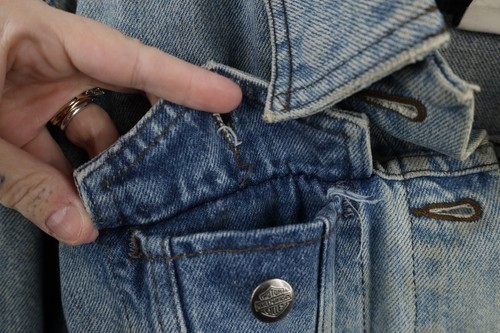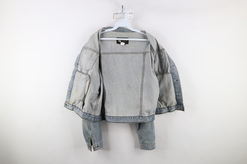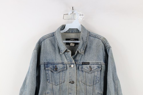 Vtg 90s Harley Davidson Womens L Distressed Spell Out Denim Jean Trucker Jacket