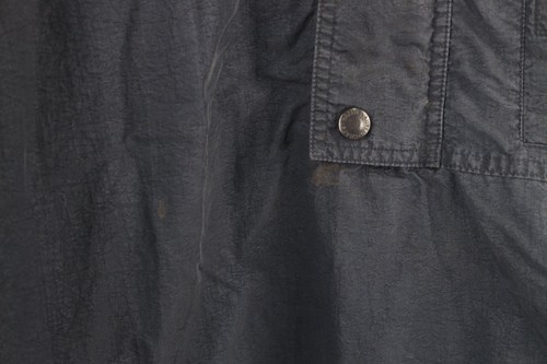 Has stains on front. Elastic on sleeve cuffs is stretched out