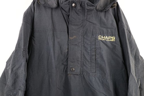 Vintage 90s Chaps Ralph Lauren Mens XL Distressed Spell Out Hooded Anorak Jacket
