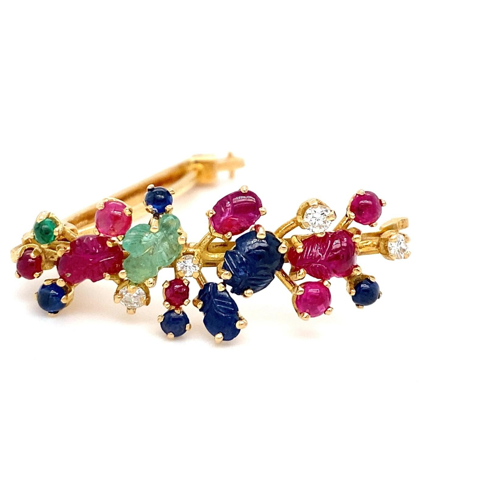 Fermacravatta con pietre preziose e diamanti intagliati in oro giallo 18 carati 1-1/2" 8,60 g