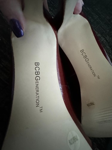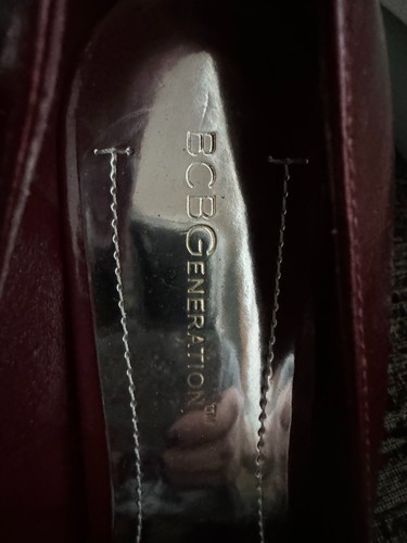 These BCBGeneration cranberry red vegan leather pumps are in very good condition as they have never been worn but there is some defects (as shown in photos). It features: