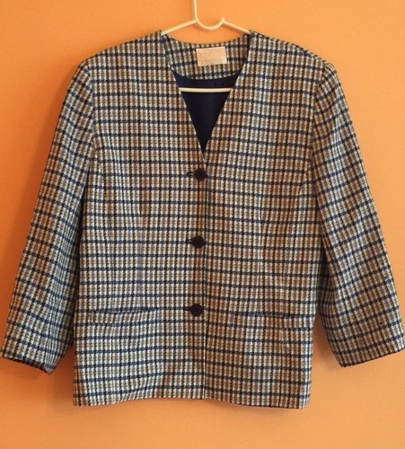 VTG Cream,Yellow,Navy Check Pattern Blazer Jacket PENDLETON SZ 14