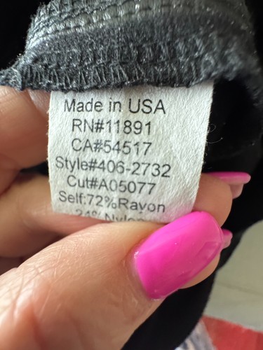 back panel: 72% rayon, 24% nylon, and 4% spandex