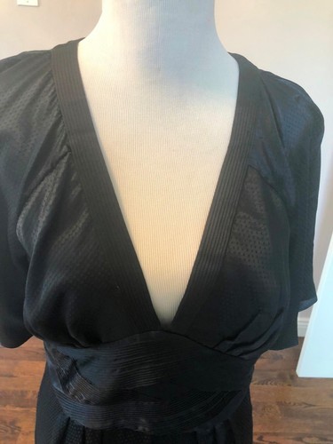 This vintage SIGNATURE for Saks Fifth Avenue navy umpire silk jaquard top is in excellent used condition with no signs of damage of any kind. It features:
