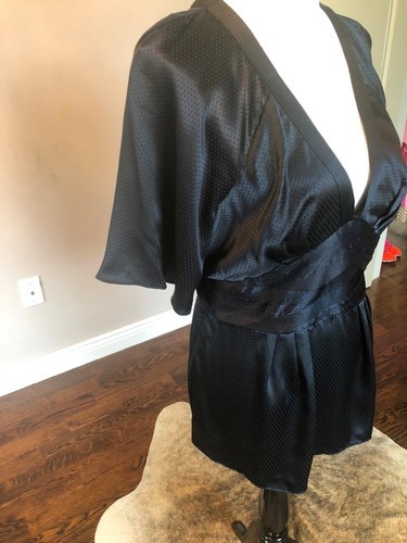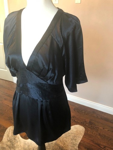 EUC VTG Signature for Saks Fifth Avenue Navy Umpire Silk Jaquard Top SZ L