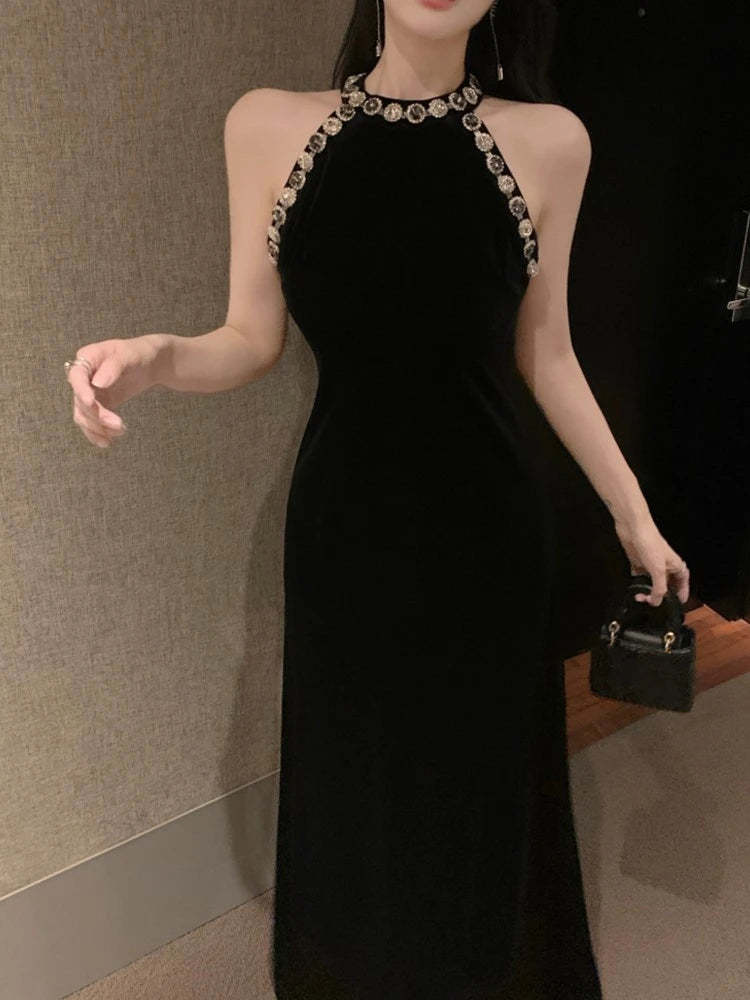 This velvet dress possesses a slight stretch and a slim, straight silhouette. The sleeve style is unique and the neckline is O-Neck, adding luxurious details to the design. Adorned with delicate diamonds, this dress is a perfect addition to your exclusive autumn wardrobe. Made of high-quality polyester from Mainland China, this mid-calf dress exudes elegance and sophistication. Its comfortable fit, zipper closure, and synthetic fiber material composition make it a must-have for the discerning woman.