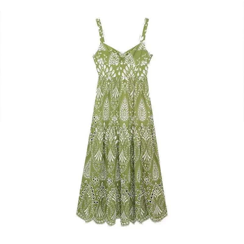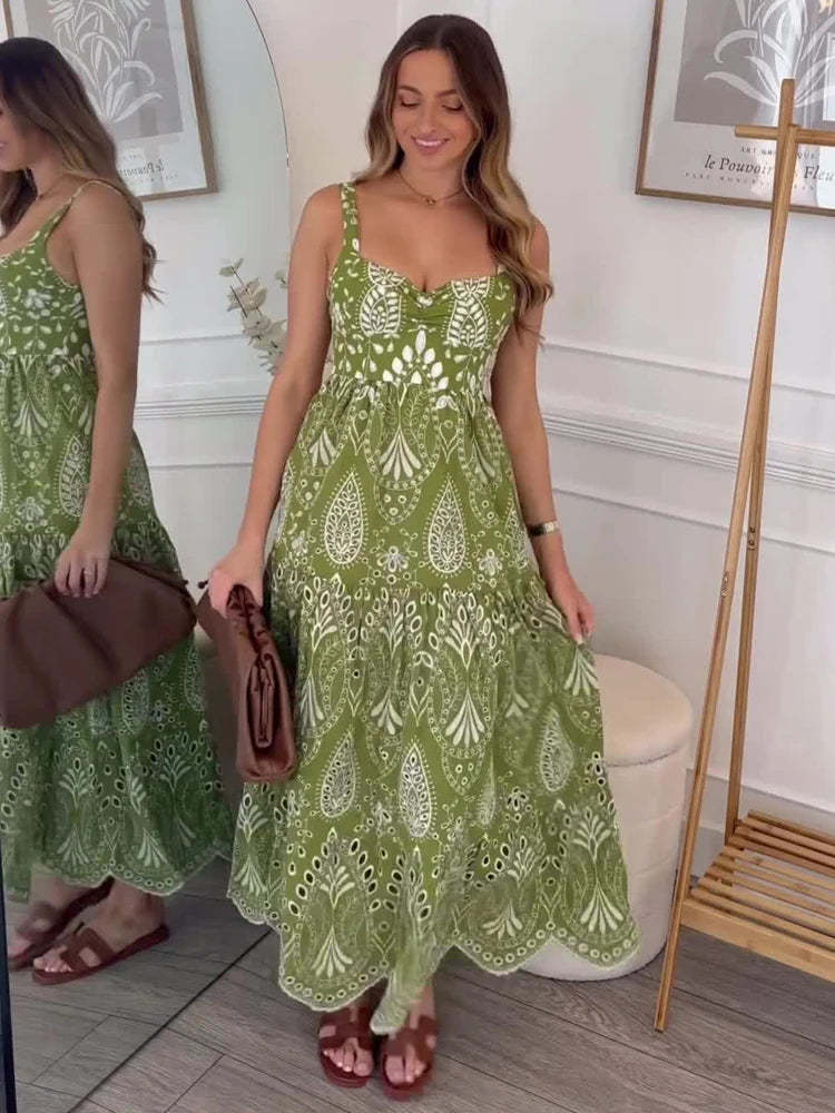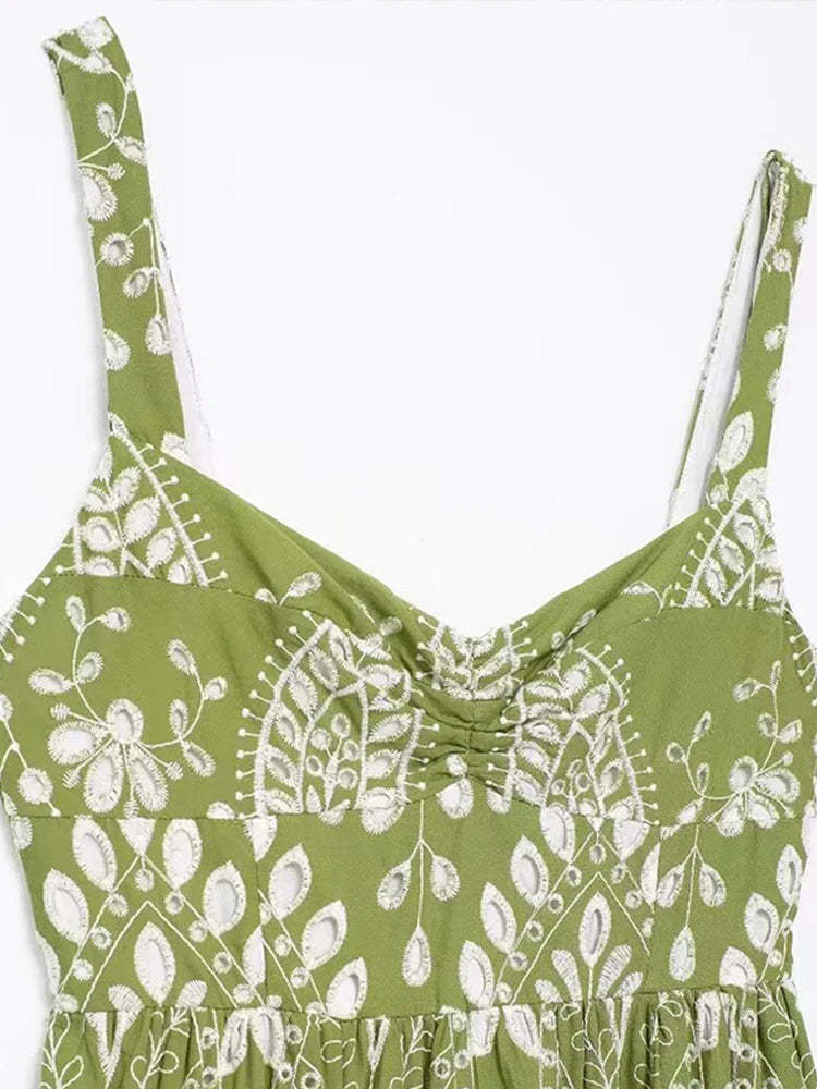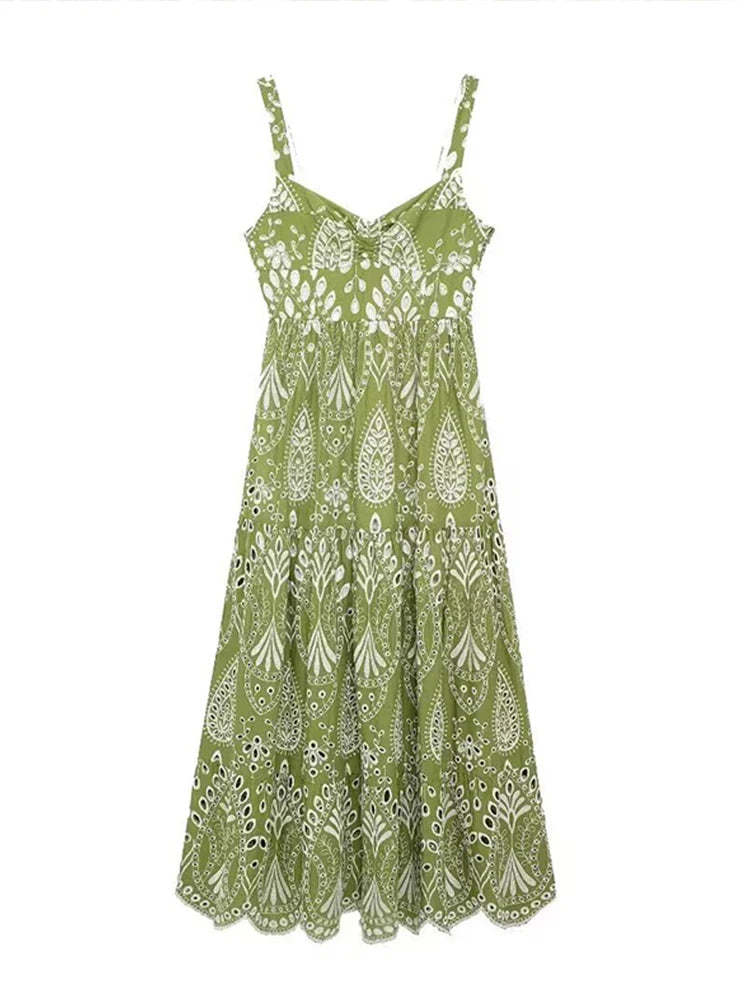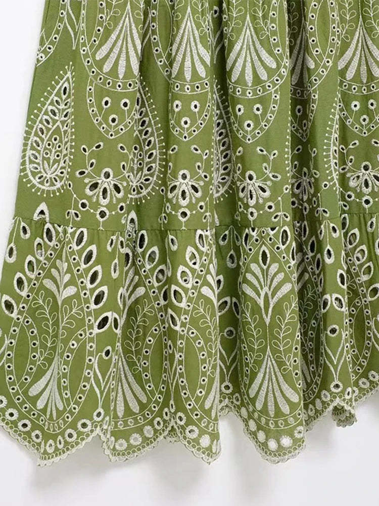 Chic Embroidery Hollow Out Sleeveless Backless Long Beach Dresses