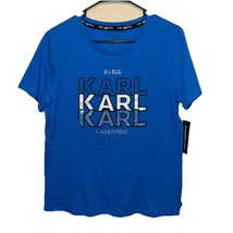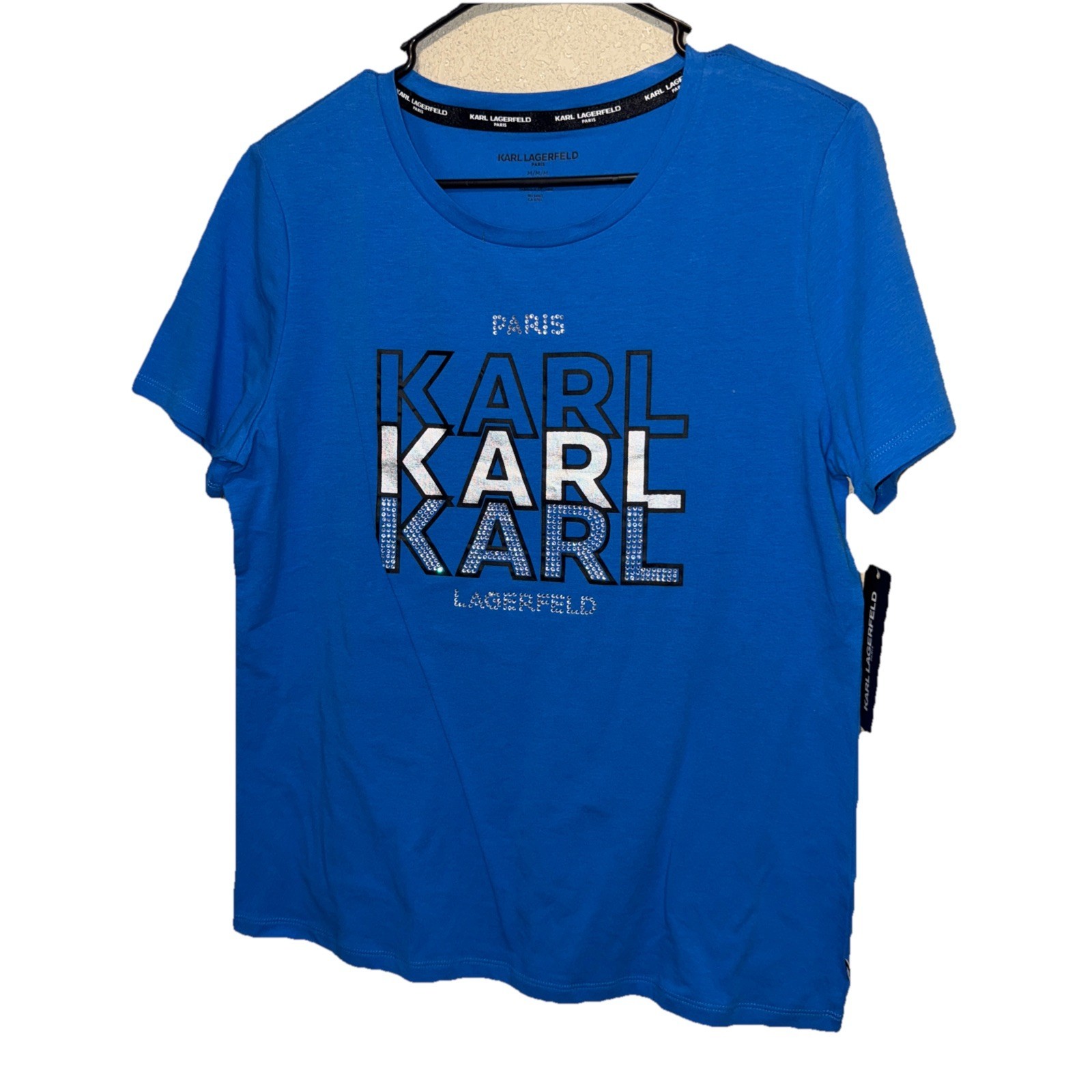 Karl Lagerfeld LOGO T Shirt With Rhinestones BLUE SZ M NEW