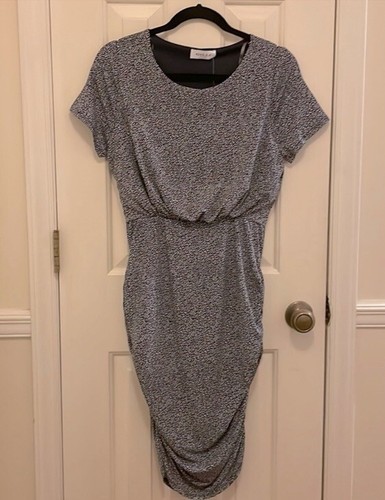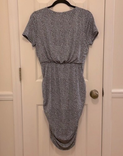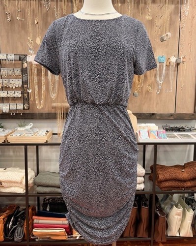 GILLI Navy Blue Ruched Short Sleeve Print Dress Size Medium NEW