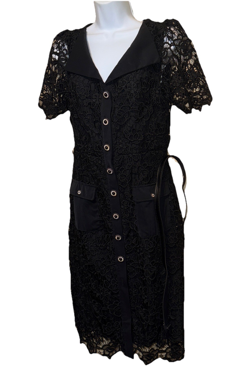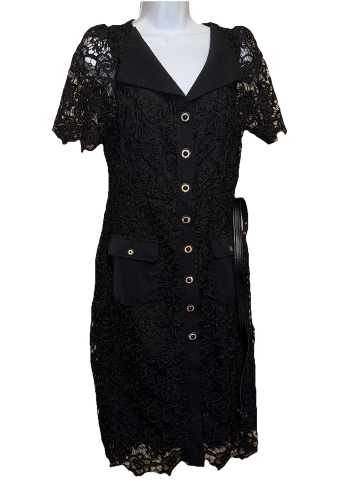 NANETTE LEPORE BLACK Lace dress Button Front POCKETS