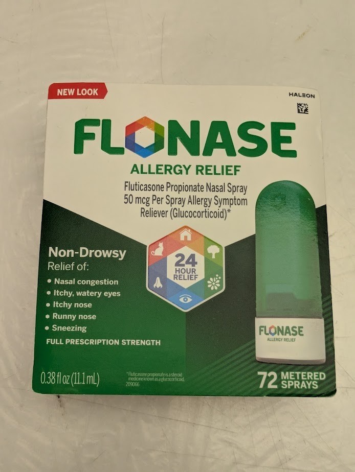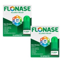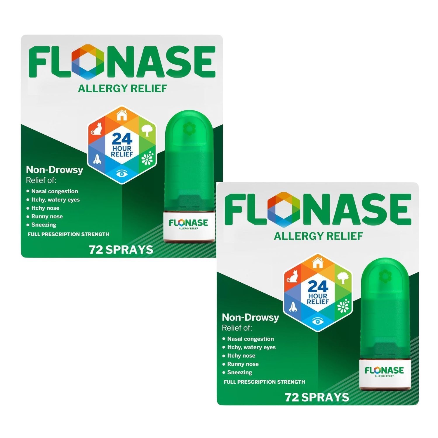 One 72-spray bottle of Flonase Allergy Relief Nasal Spray, 24 Hour Non Drowsy Allergy Medicine, Metered Nasal Spray, stops your body from overreacting to allergens