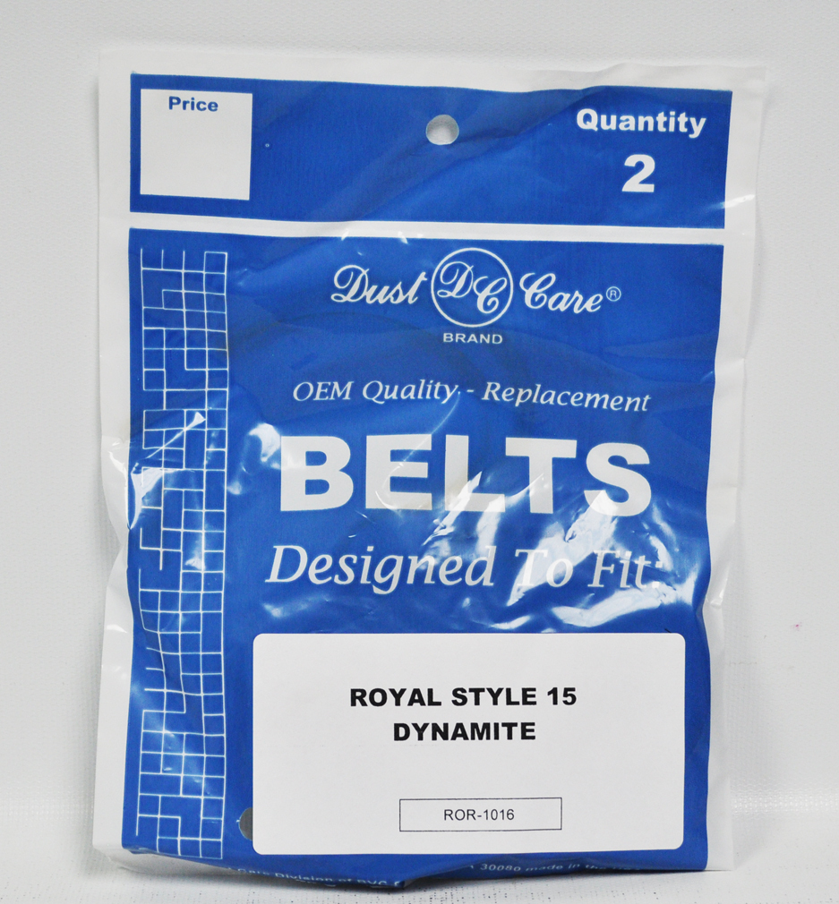 Dust Care Royal Style 15 Dynamite Replacement Vacuum Belts. Style 15 Dynamite Flat Belts. 2 Flat Belts in Package. Designed to Fit: Royal Style 15 Vacuum. Dust Care OEM Quality Replacement Belts. Manufacturer Part No.: ROR-1016 ROR-1016
