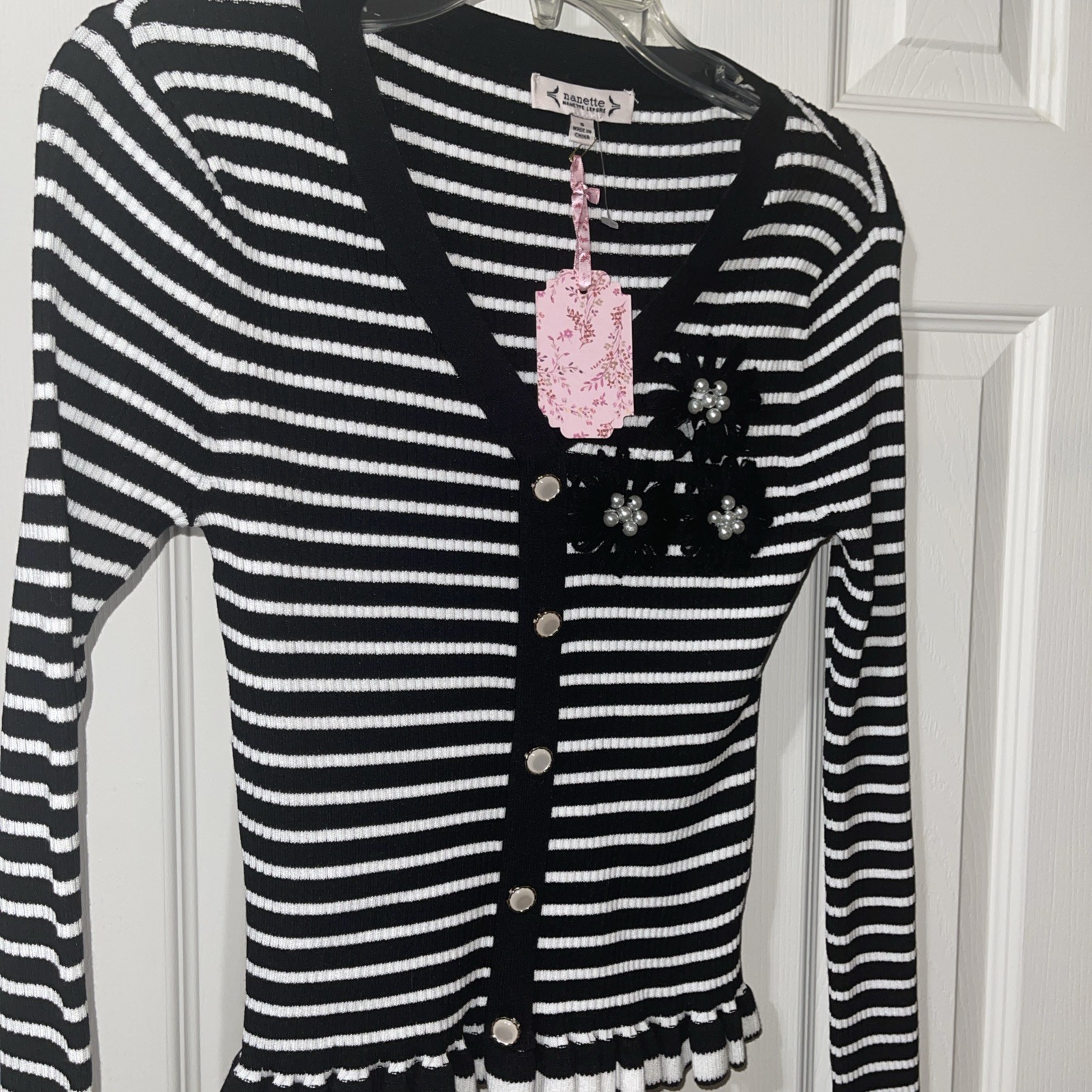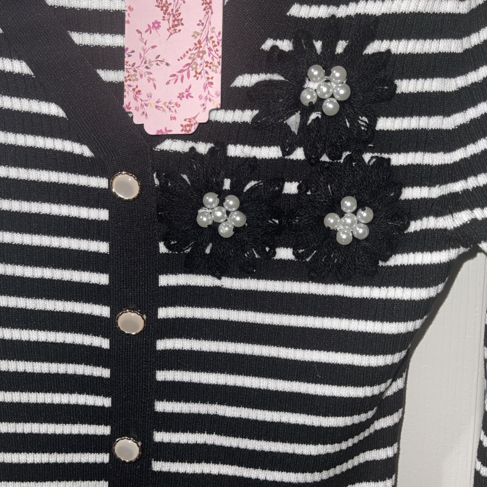 Nanette Lepore Very Black White Sweater Pearl Flowers SZ S NEW