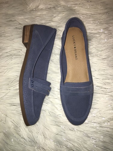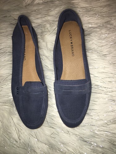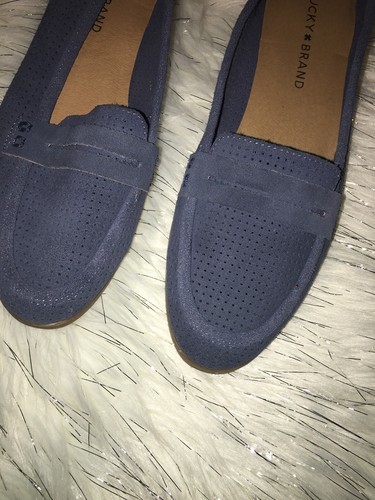 Lucky Brand Caylon Women's Flat blue Perforated Suede, Size 8 m new