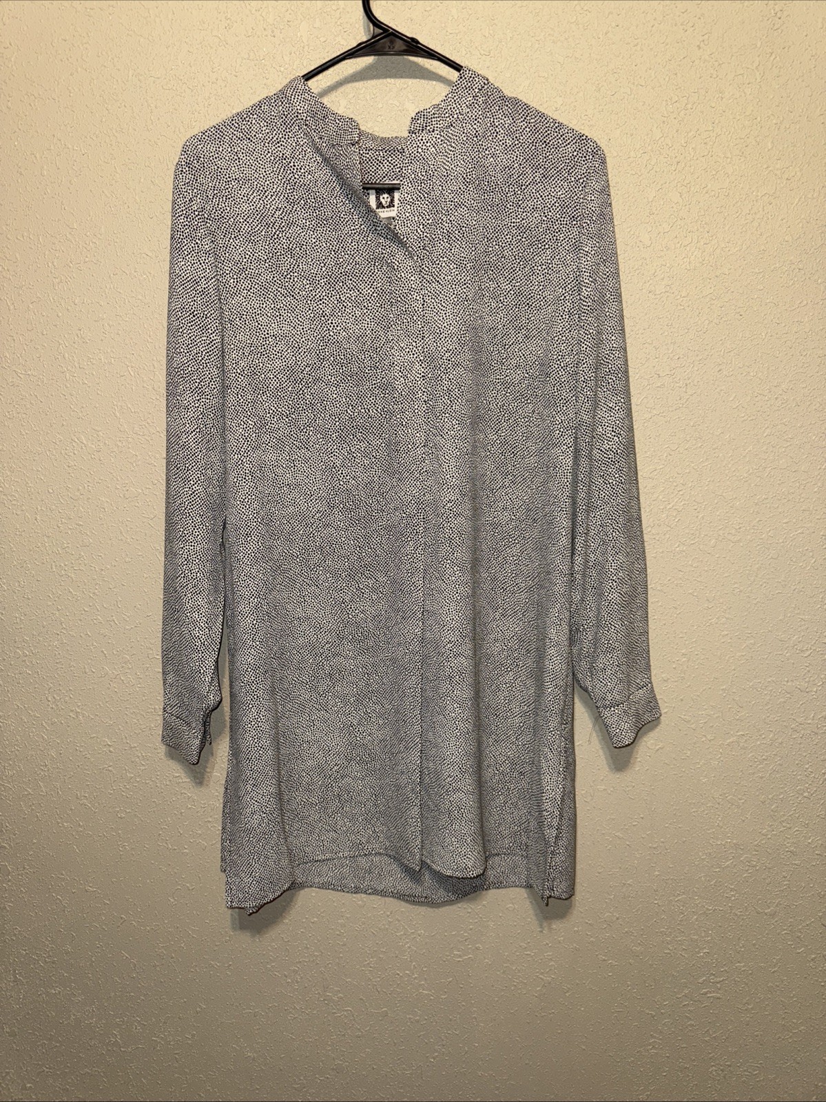 Anne Klein Women’s White /BLACK DOTS Long Sleeve Blouse Size S