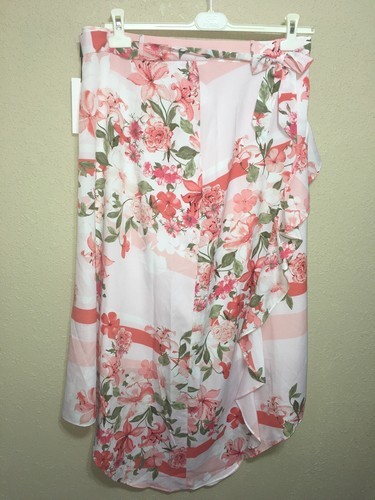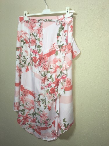CALVIN KLEIN Ruffle Front Floral Midi Summer Skirt with belt SZ 2 NEW $99