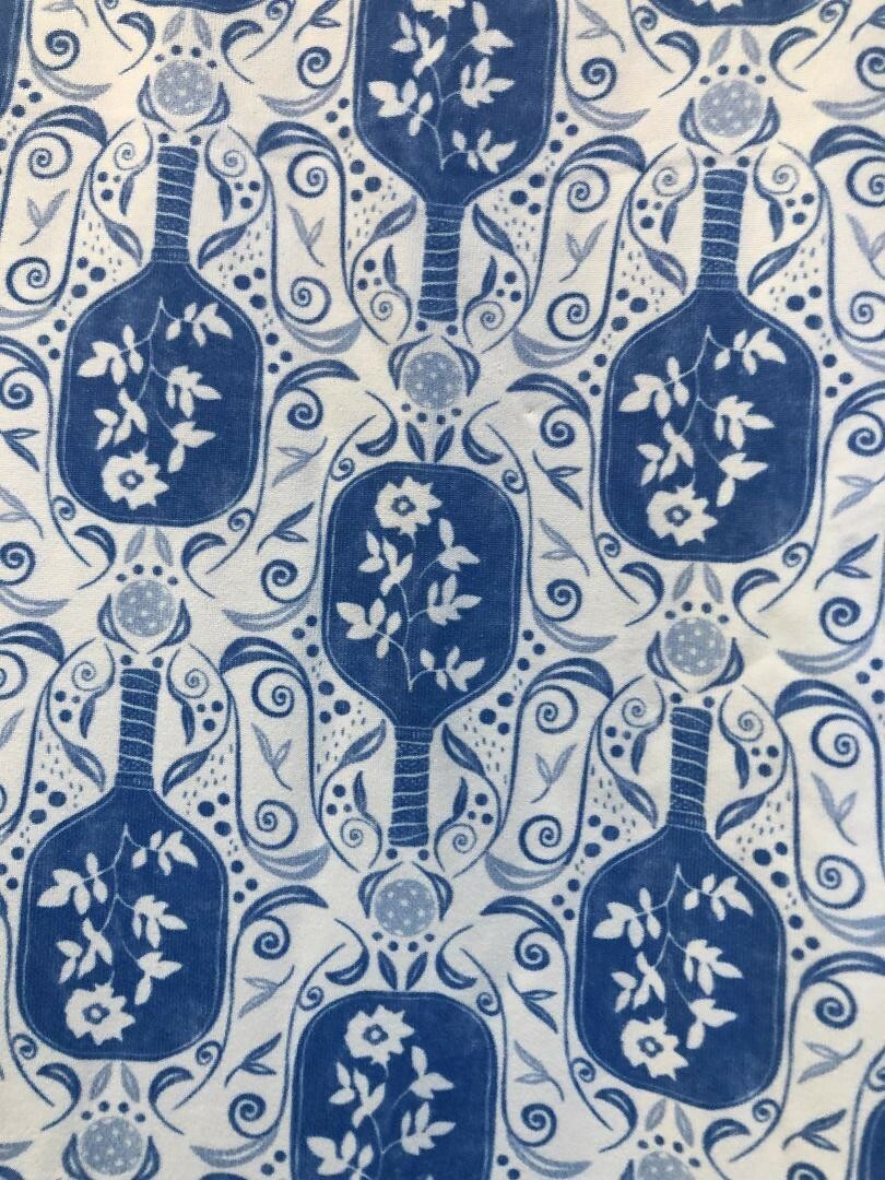 The colors are Periwinkle Blue White in a Very Cute Pickleball Paddle pattern