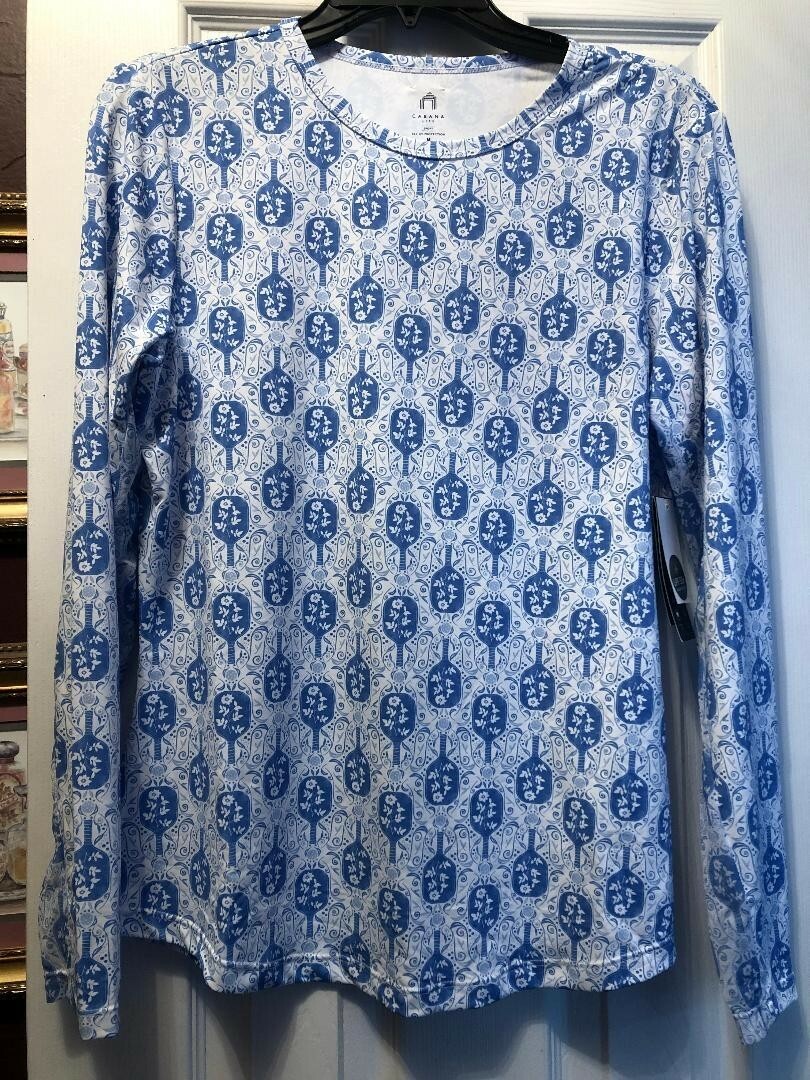 NWT - New With Tags Ladies Womens CABANA LIFE BLUE WHITE Pickleball Long Sleeve Crew Neck Shirt Top - Sizes XS, Small, Medium, Large XL