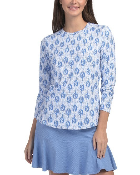 NWT Ladies CABANA LIFE Blue White Pickleball Long Sleeve Crew Shirt XS S M L XL
