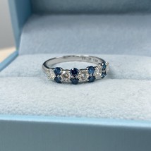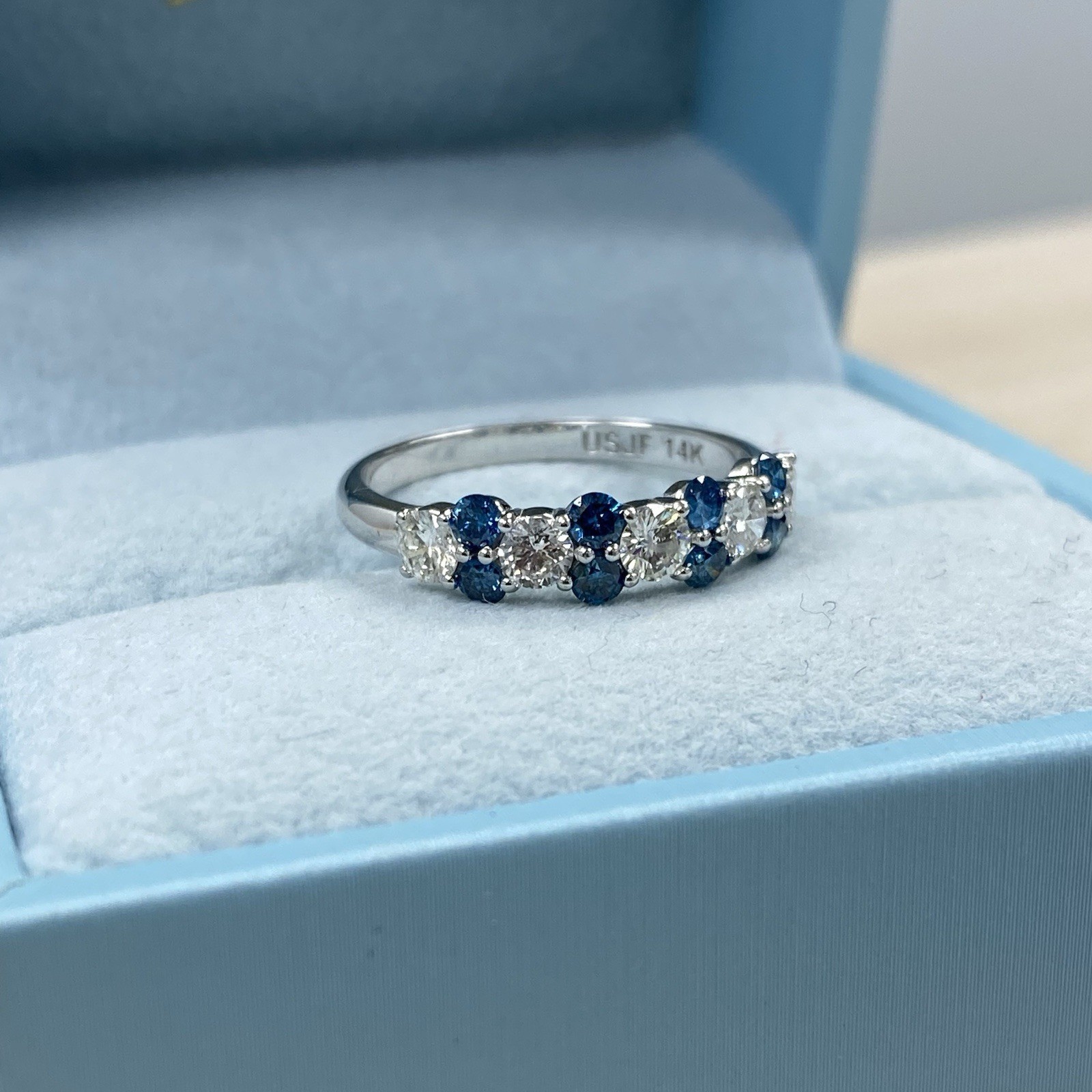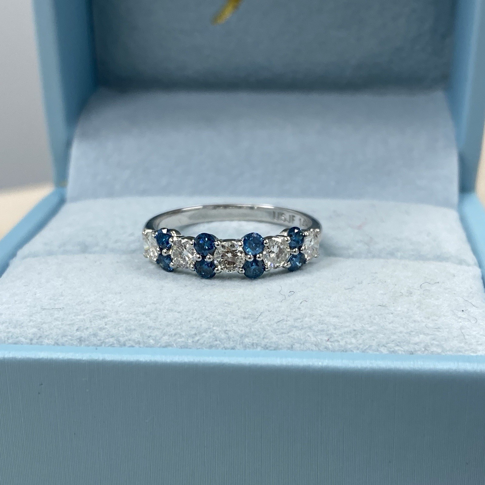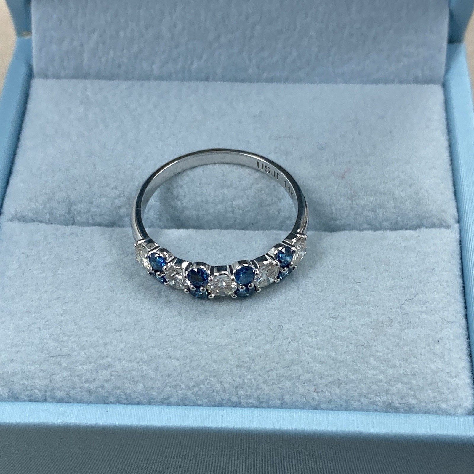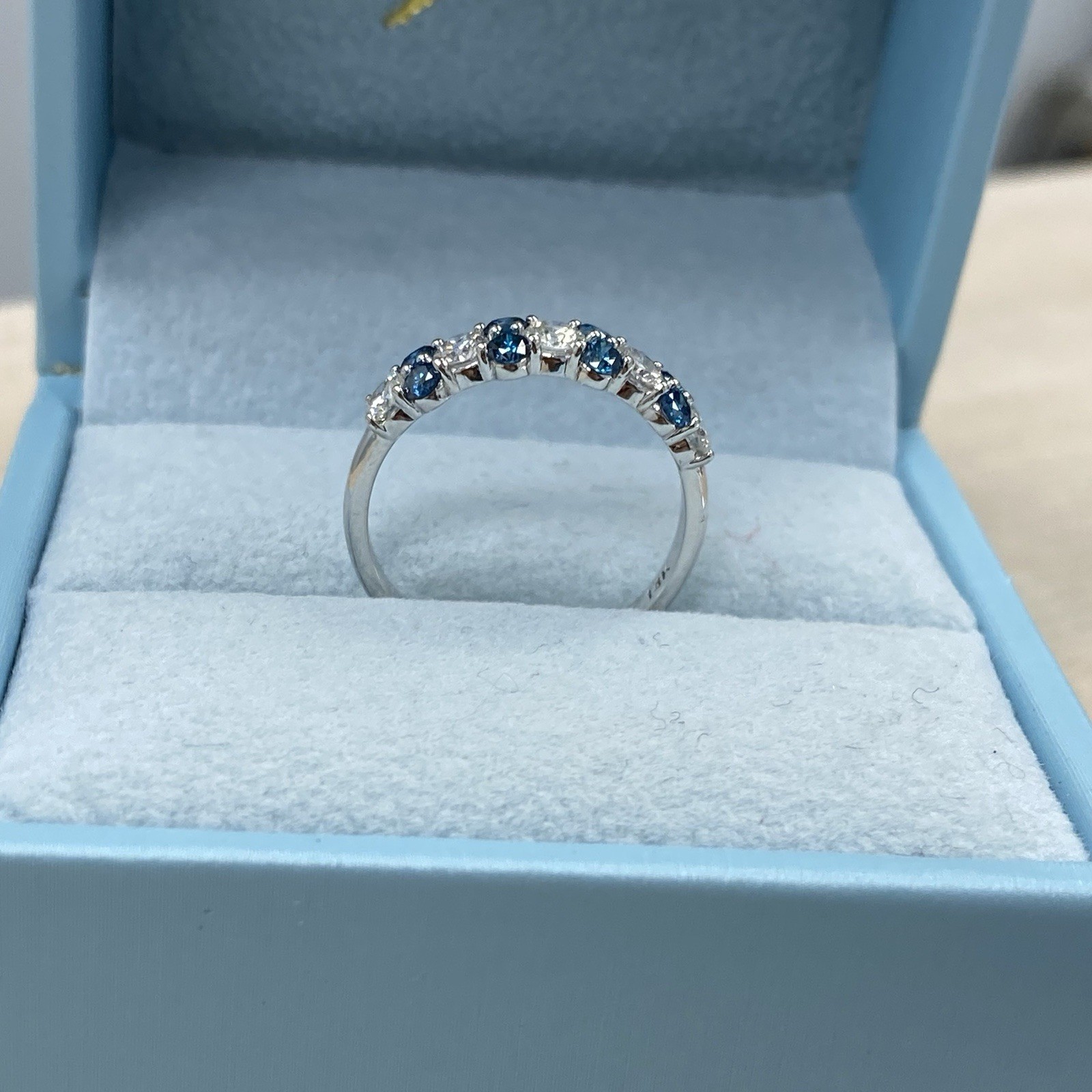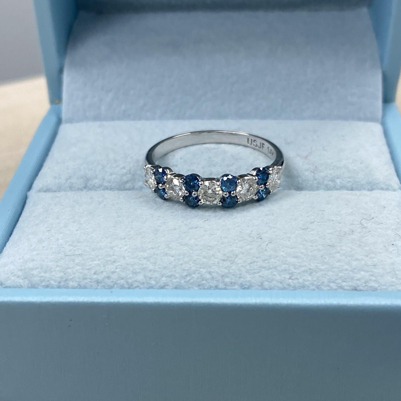 1 Carato Blu e Bianco Diamante Naturale Alternando Fede Nuziale 14k Oro Bianco