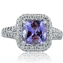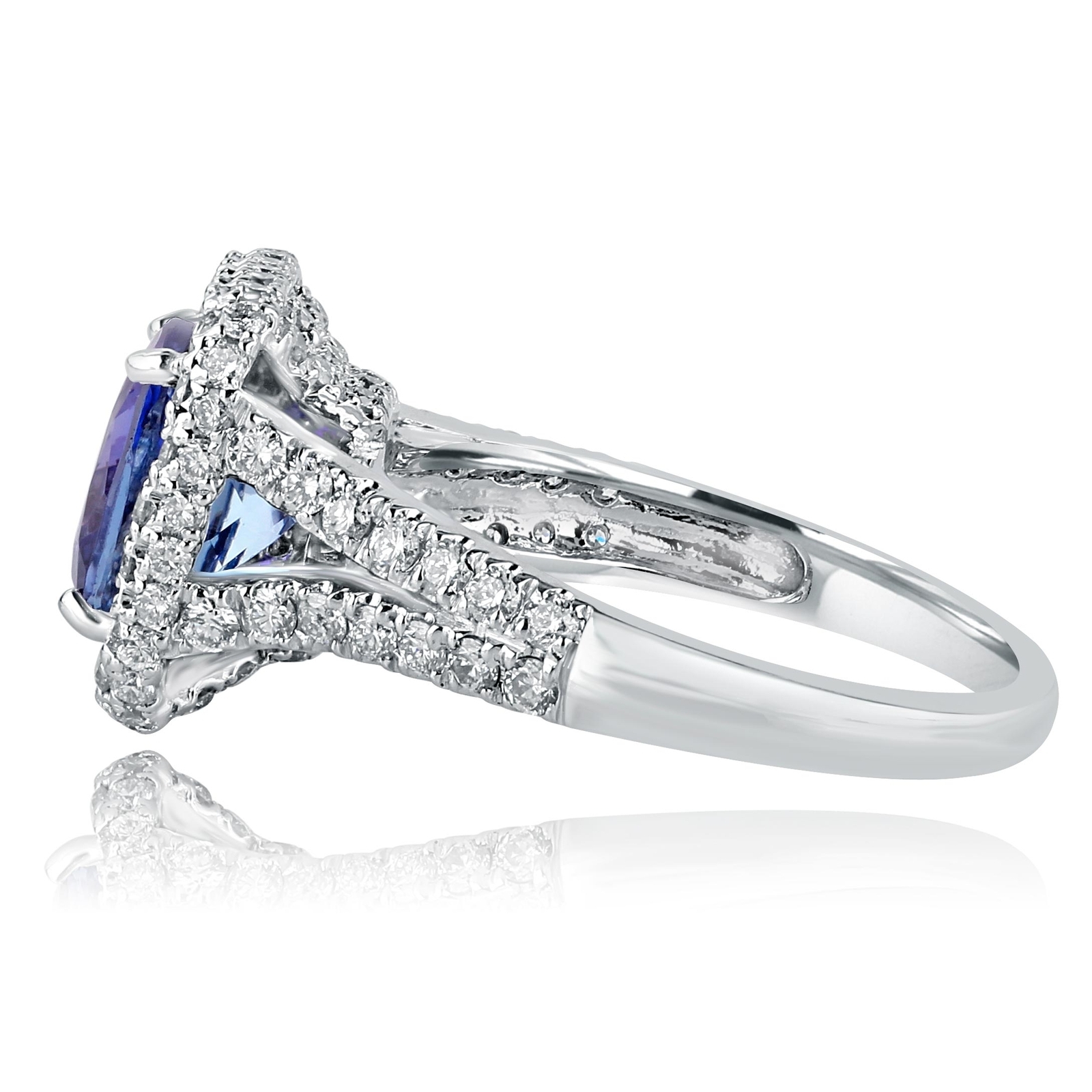 3.30 Carats Tanzanite Violet Bleu Coussin Forme Bague Diamant 18k or Blanc